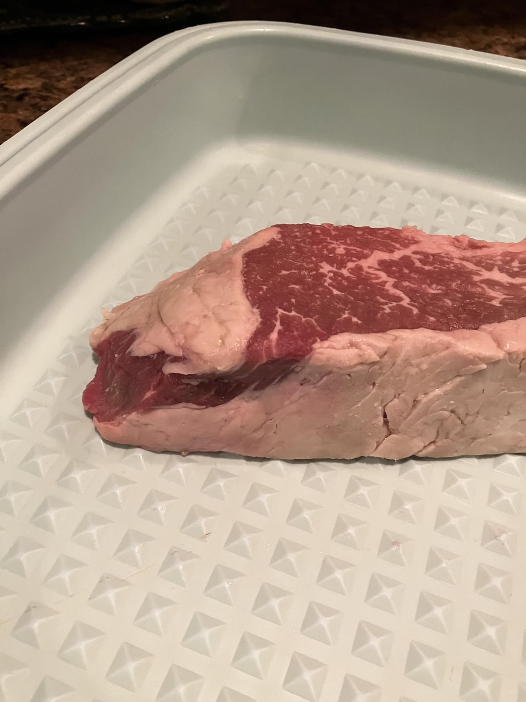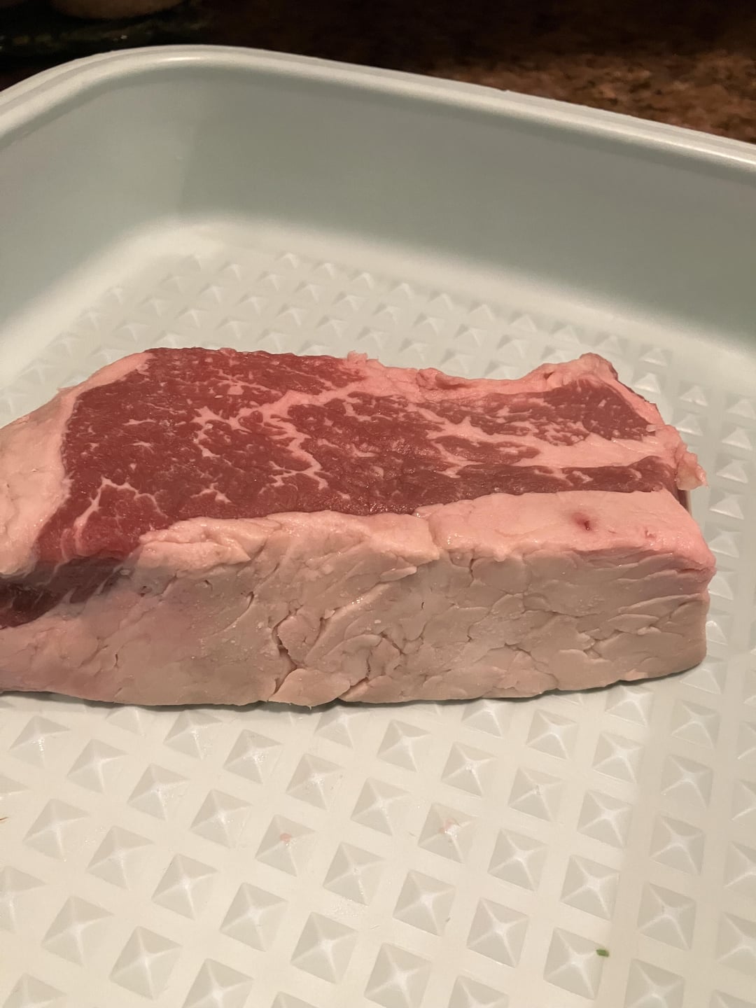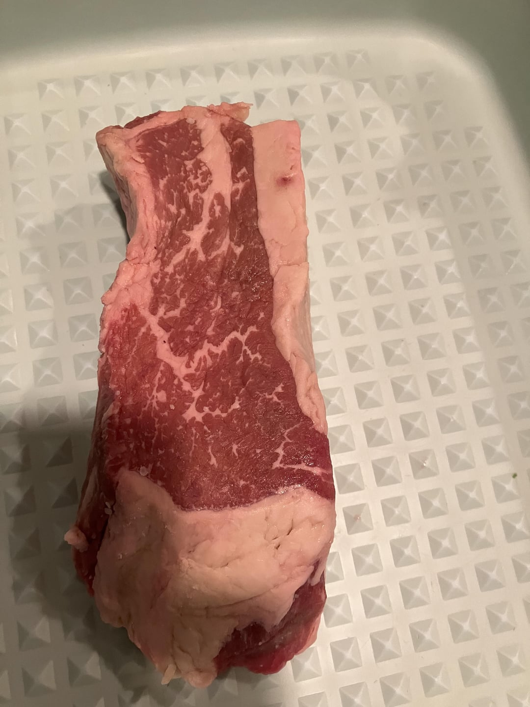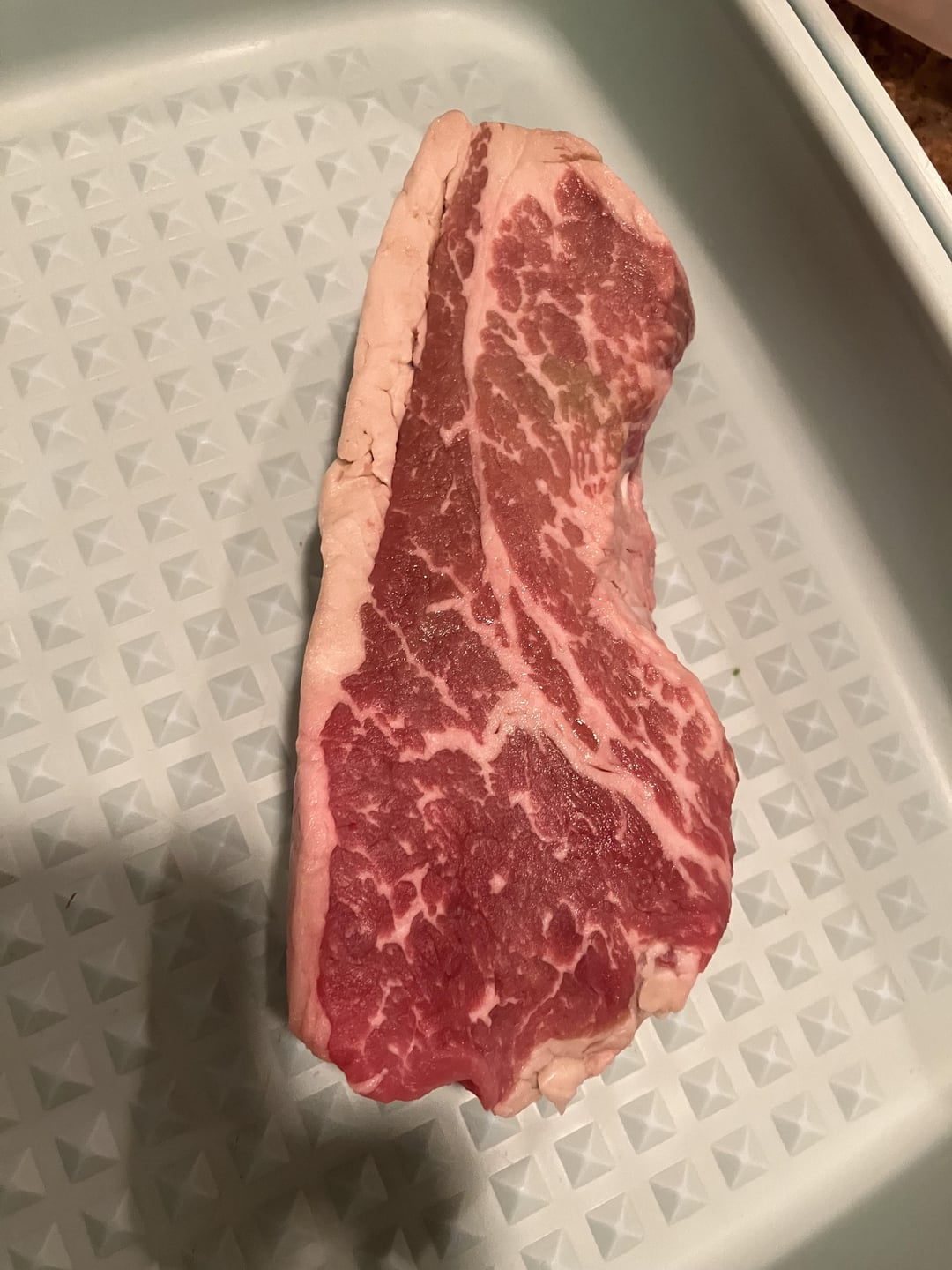hard to tell, fat cap makes it look like Ny strip, marbling like tri-tip even prime NY doesn’t marble like that