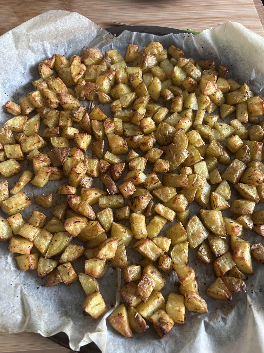 Potatoes cooked in oven with garlic powder and Cajun spices with salt and a little olive oil
