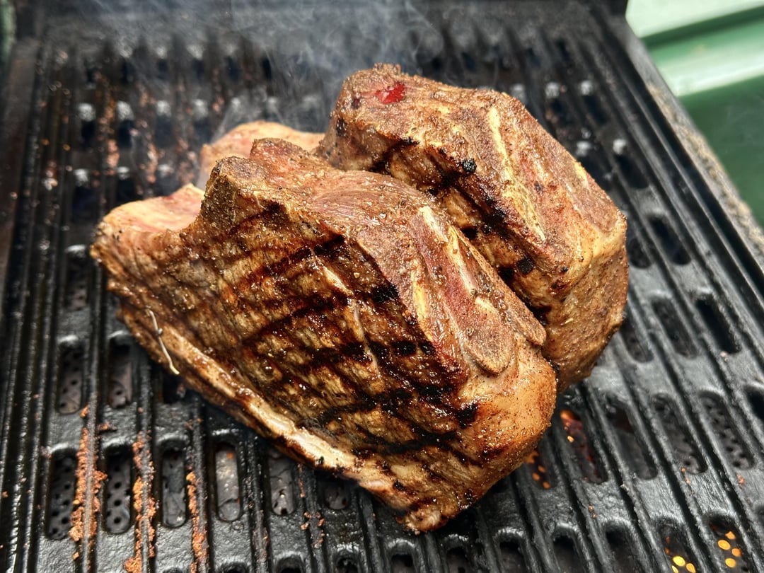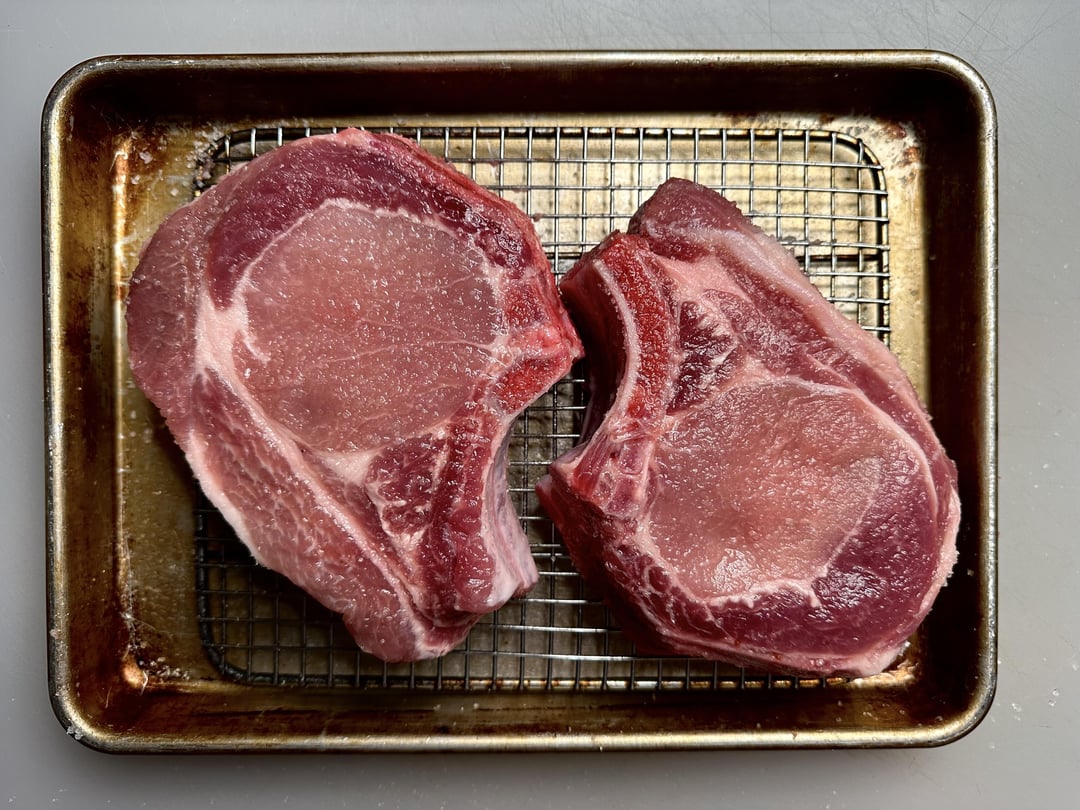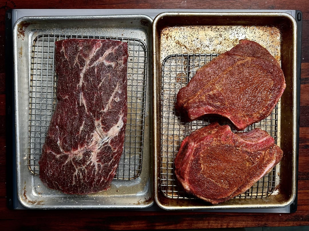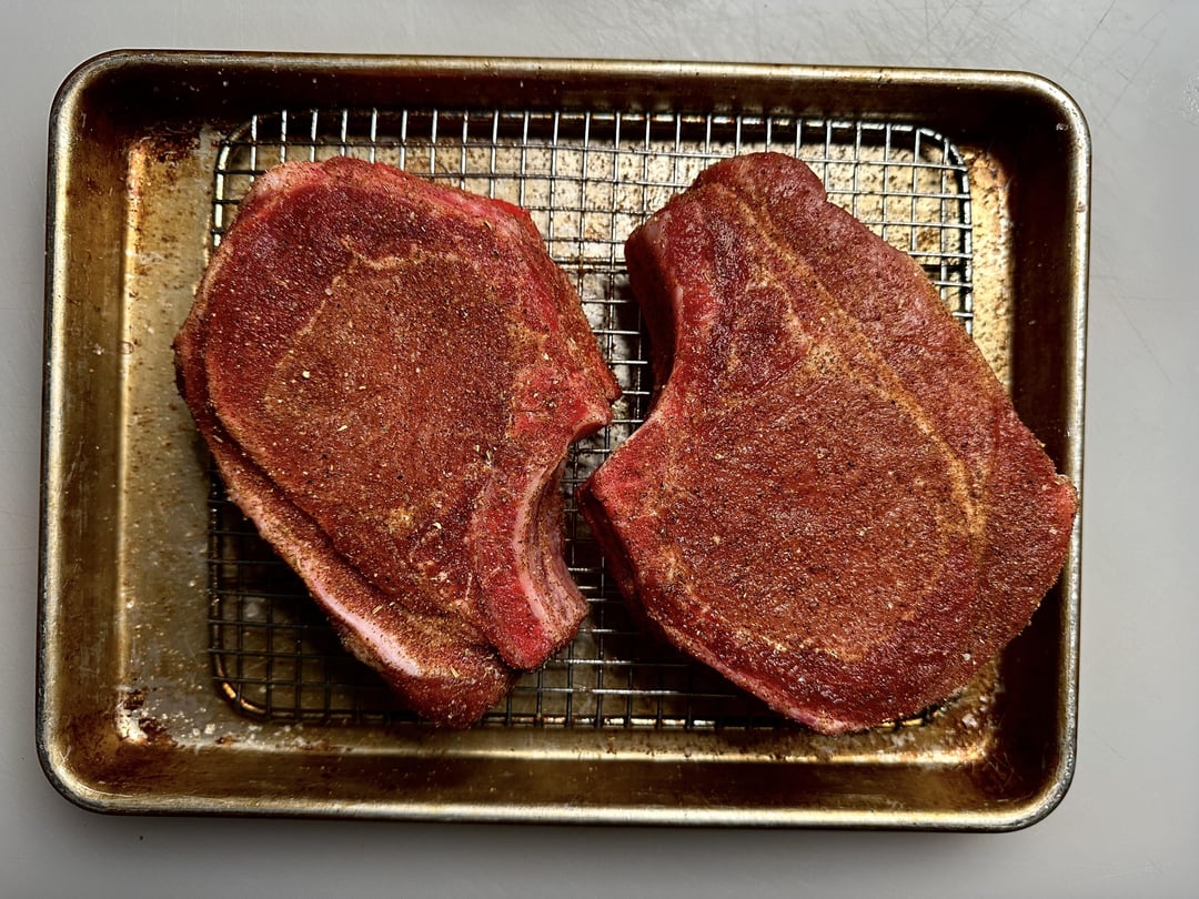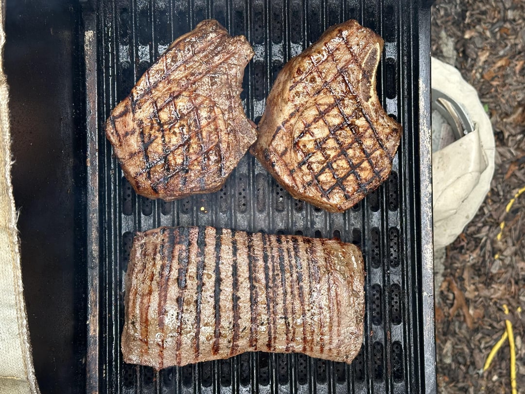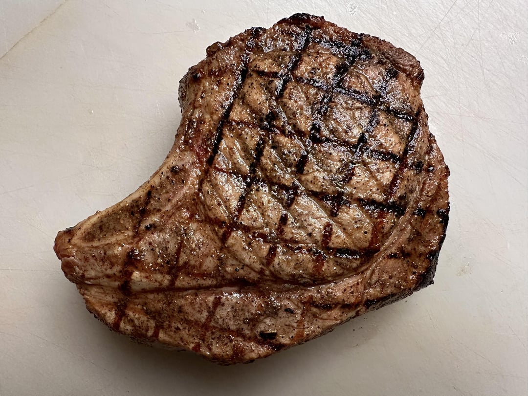 Did a little grilling yesterday. A couple of super thick bone-in pork chops and a flat iron steak. I dry-brined the chops over night, then seasoned and onto the grill to get a good char. Since they were so thick I finished sous vide for 4 hours at 140°F. Turned out super juicy and tasty.