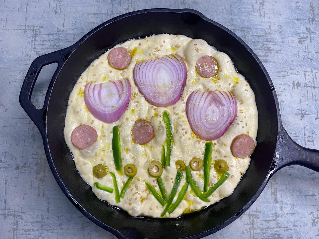 My focaccia garden came out crusty and proud πΊπͺ.. before & after