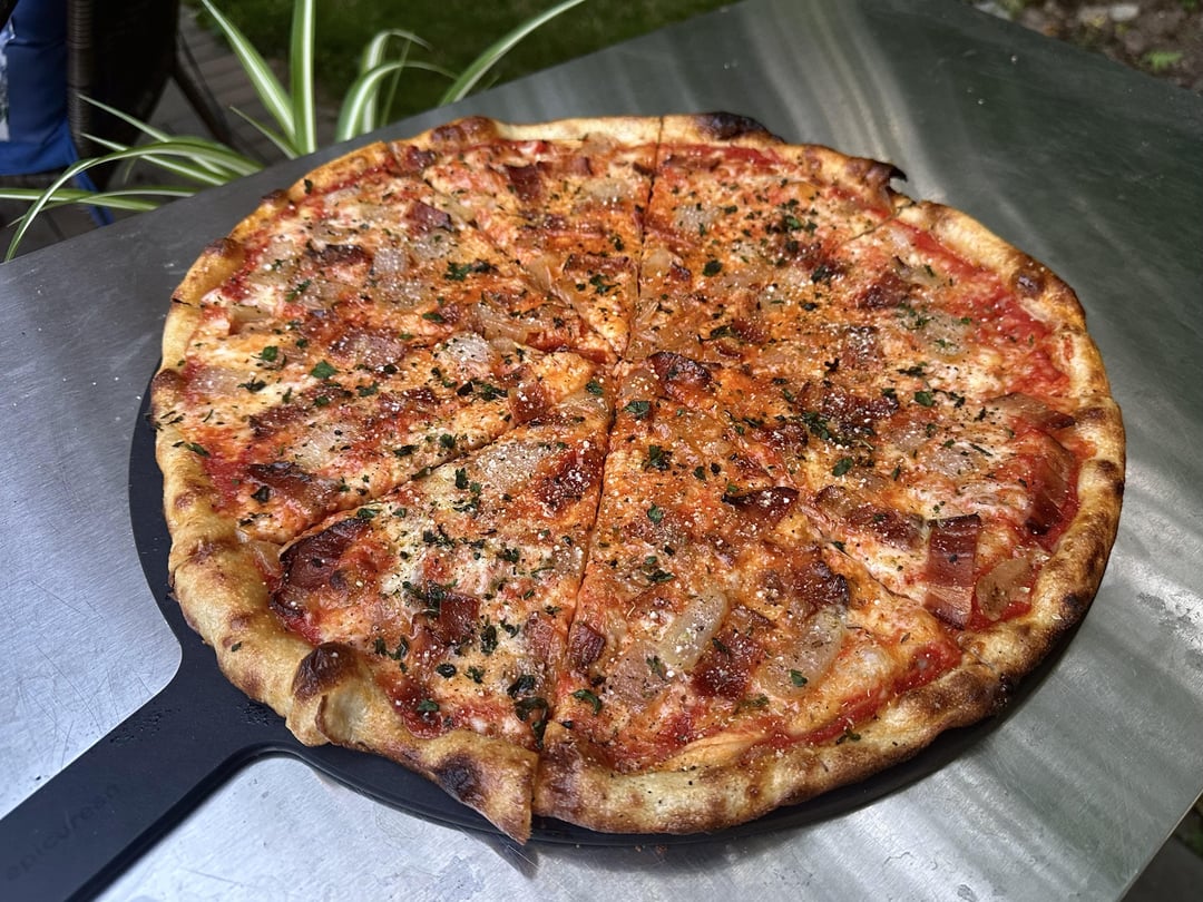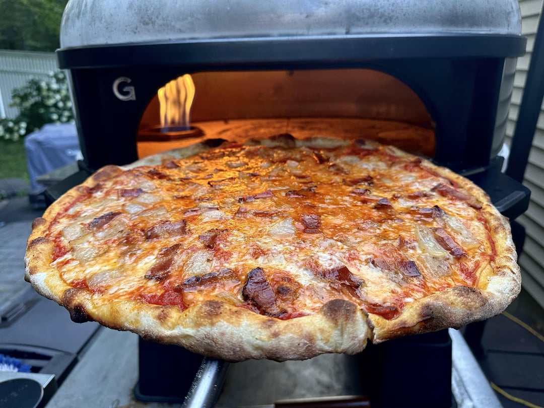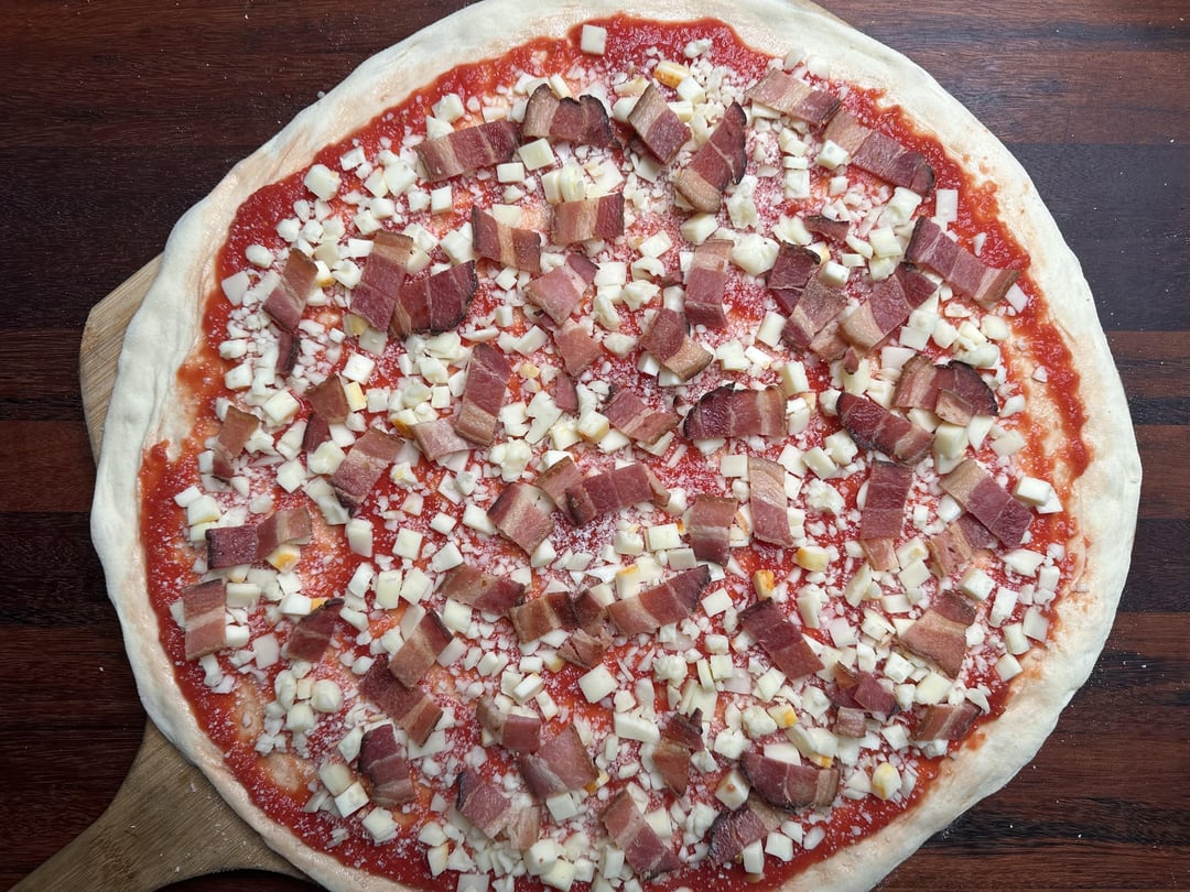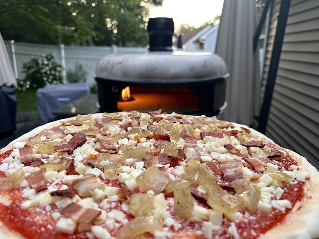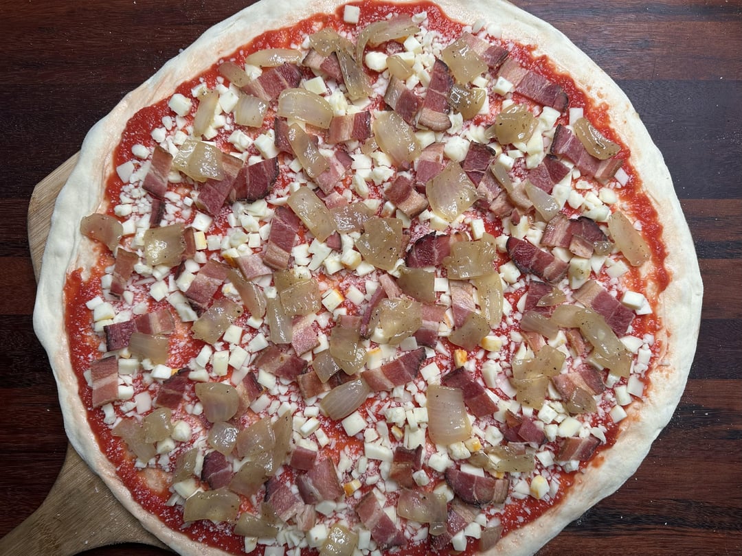 3. That looks absolutely perfect! The caramelization on those onions is chef’s kiss, and you can tell that bacon is crispy just from the photo. The cheese blend sounds amazing too, mozzarella and smoked scamorza is such a good combo. Way better than anything you’d get from delivery.