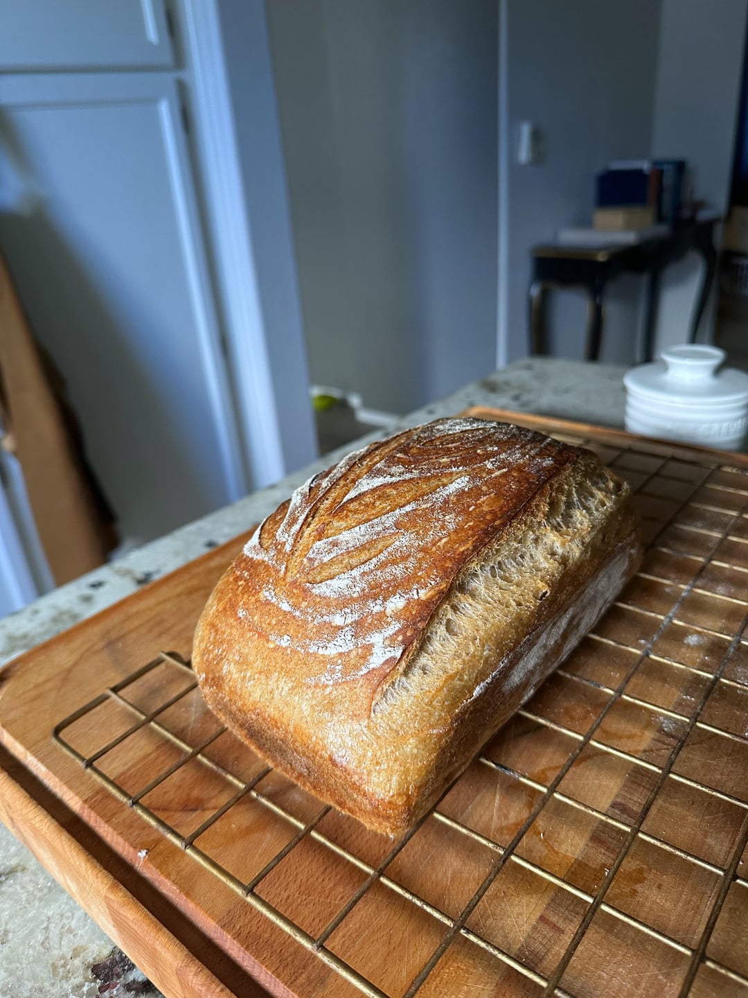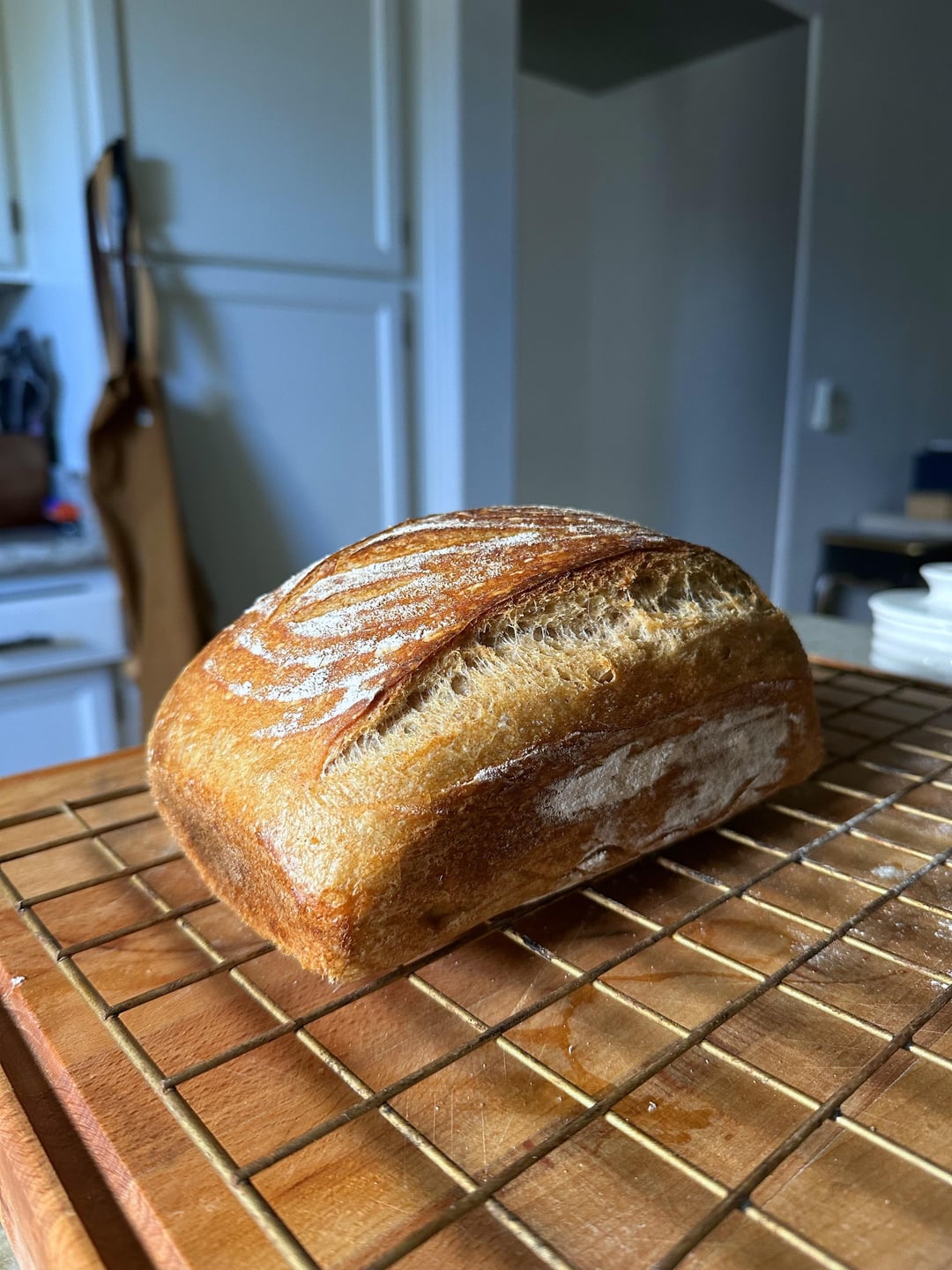 I just love making sourdoughby Icy_Fold_ 4 Comments itwasmyshadow 6 months ago She’s a beaut. Any shaping tips? That looks real dialed in WideConflict7874 6 months ago Very nice. Am a loaf panner aussi. IHazCow 6 months ago That’s beautiful. NitromethanePup 6 months ago Gorgeous. The dusting is just that little extra 🤌🏻