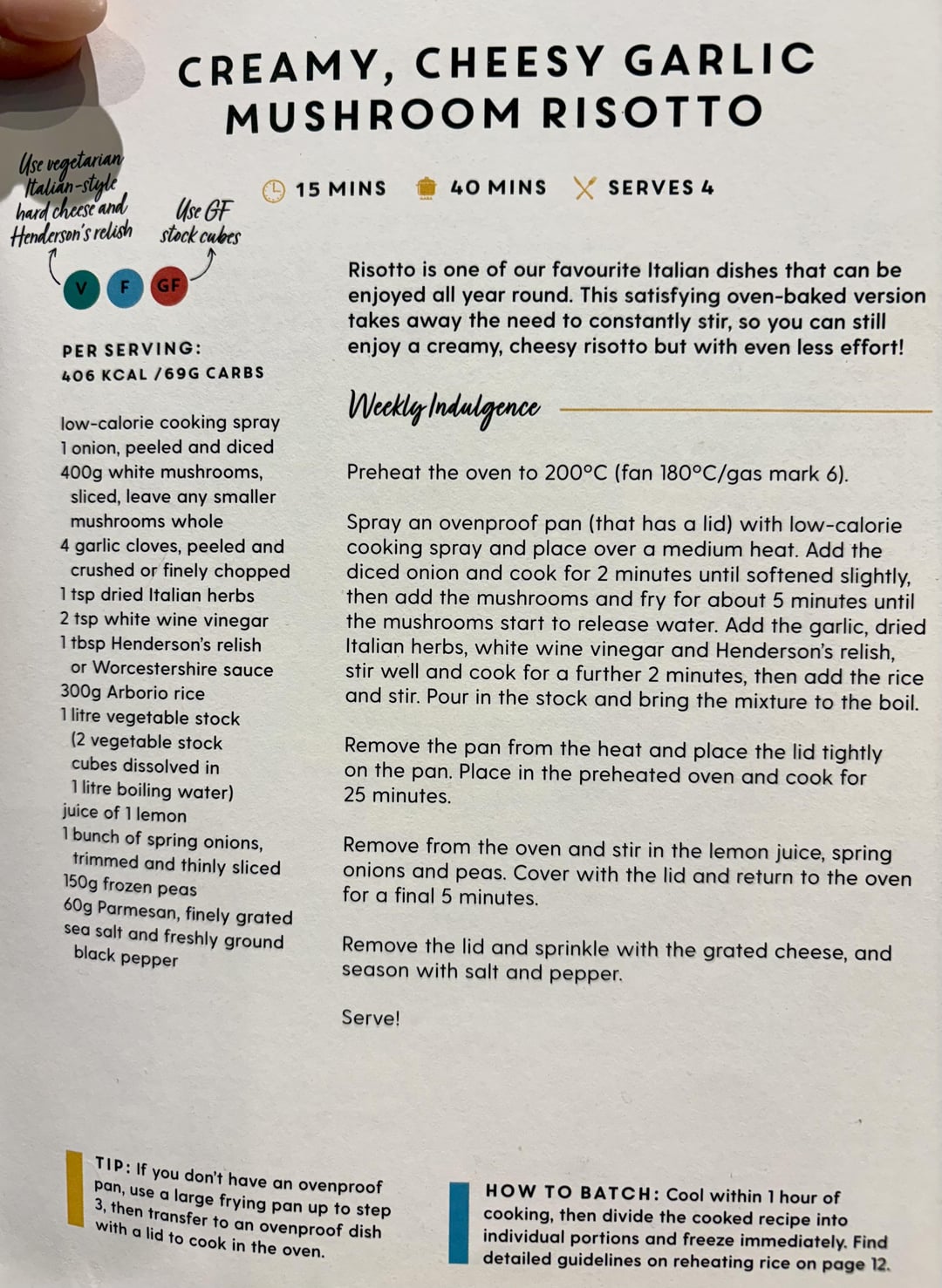 lunch: creamy, cheesy garlic mushroom risotto (recipe provided)