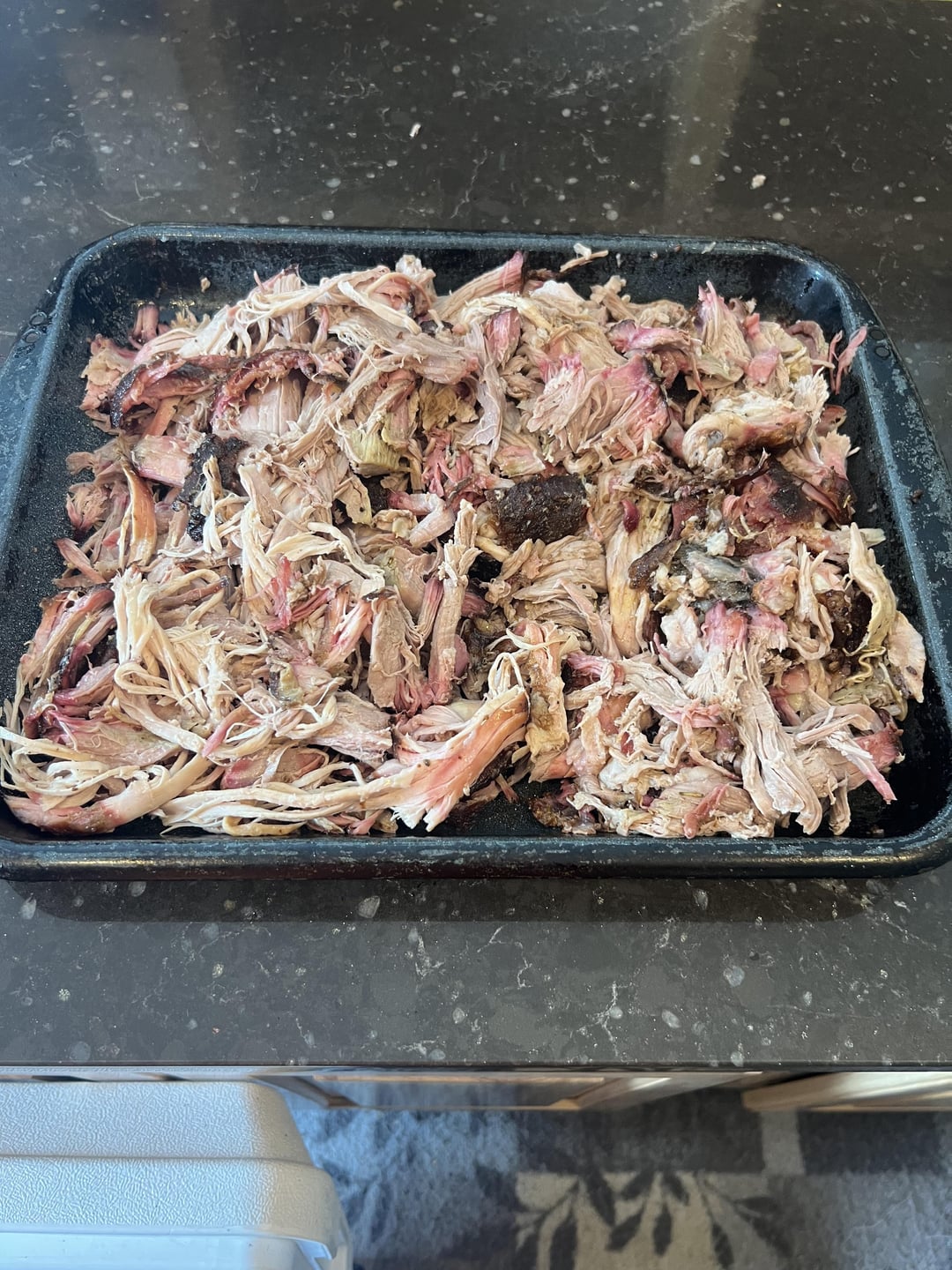 13 hours on smoker, no spritz no wrap. rested in cooler for 8 hrs. Can’t go wrong with Mac and cheese with pulled porkby Salt-Fee-9543 5 Comments User-NetOfInter 2 months ago Love to see it ApprehensivePie1195 2 months ago That’s a long time for a single butt DaChief102291 2 months ago No wrap huh? Obi_Bong 2 months ago Looks good.Just did this the other day and it took about the same time for 10 lbs. wrapped her up and it came out great. markbroncco 2 months ago That looks good! Awesome job man. Pulled pork and mac and cheese is a match made in heaven. The patience really pays off.