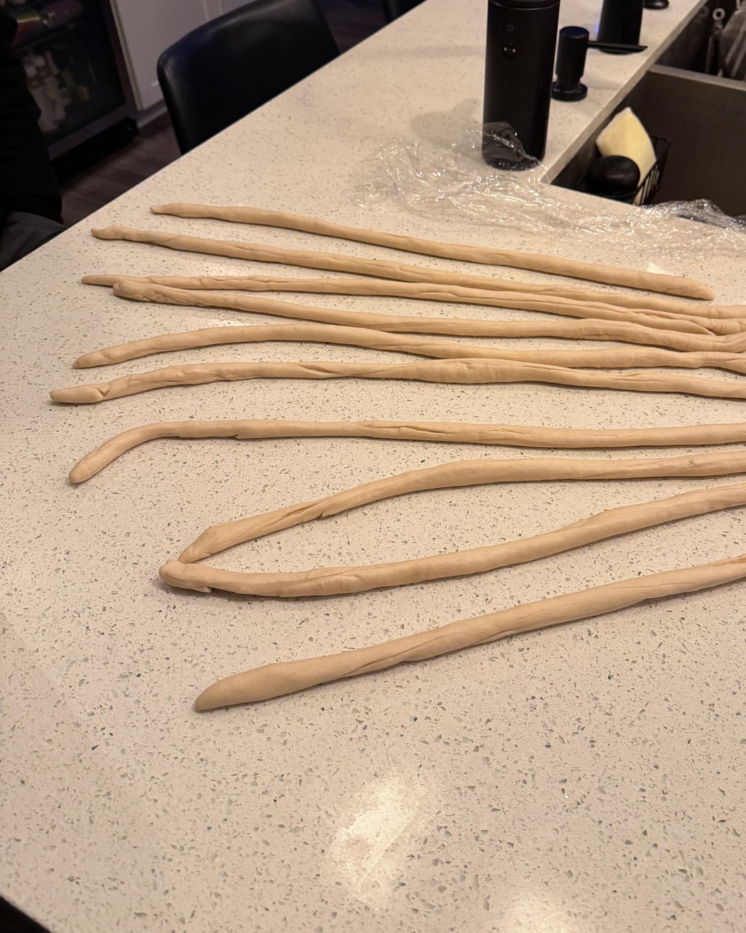 3. Roll each piece into a smooth, even rope about 18 inches long.