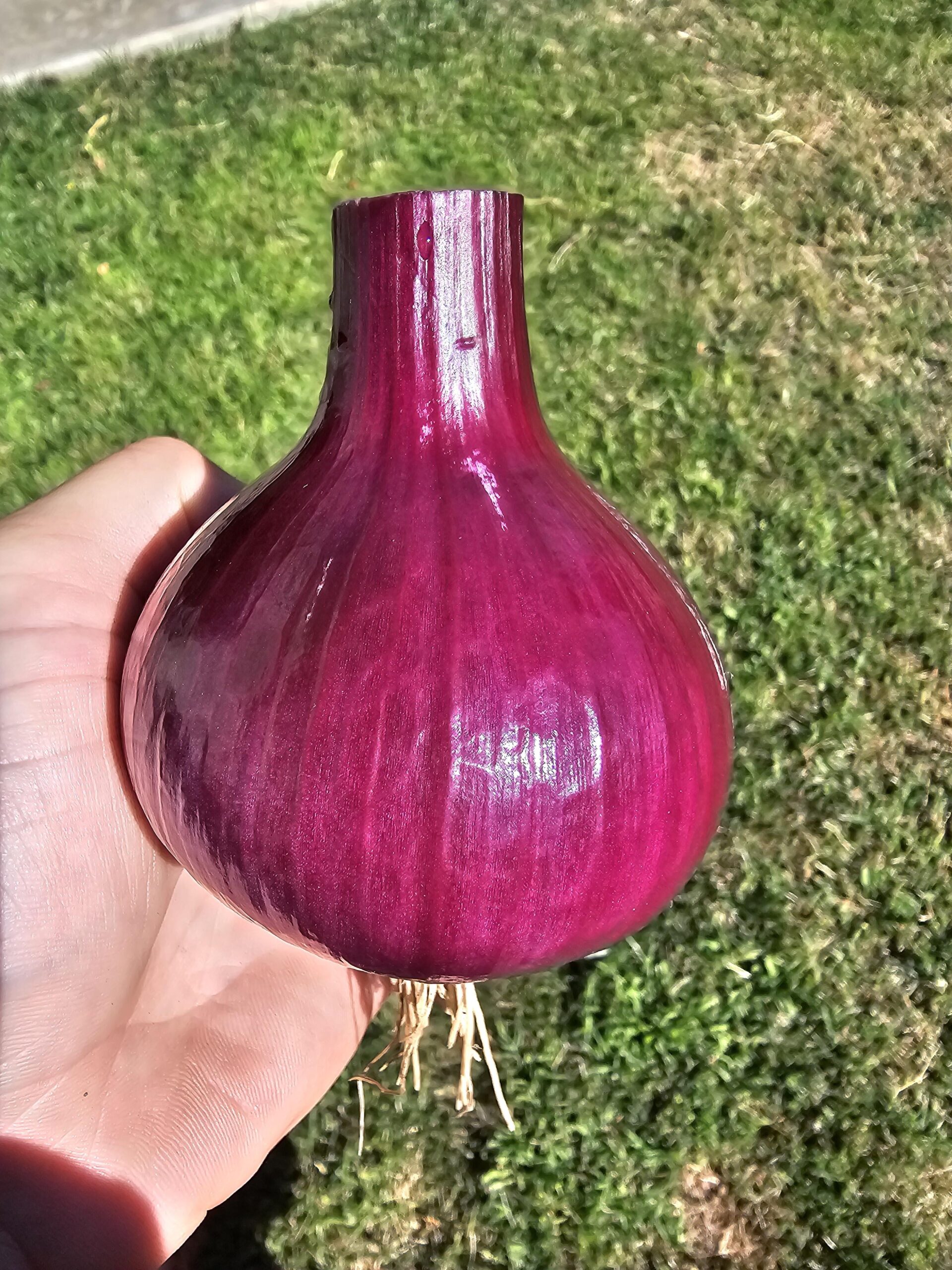 I am so proud of my girlfriends first attempt at growing red onions in the backyard!