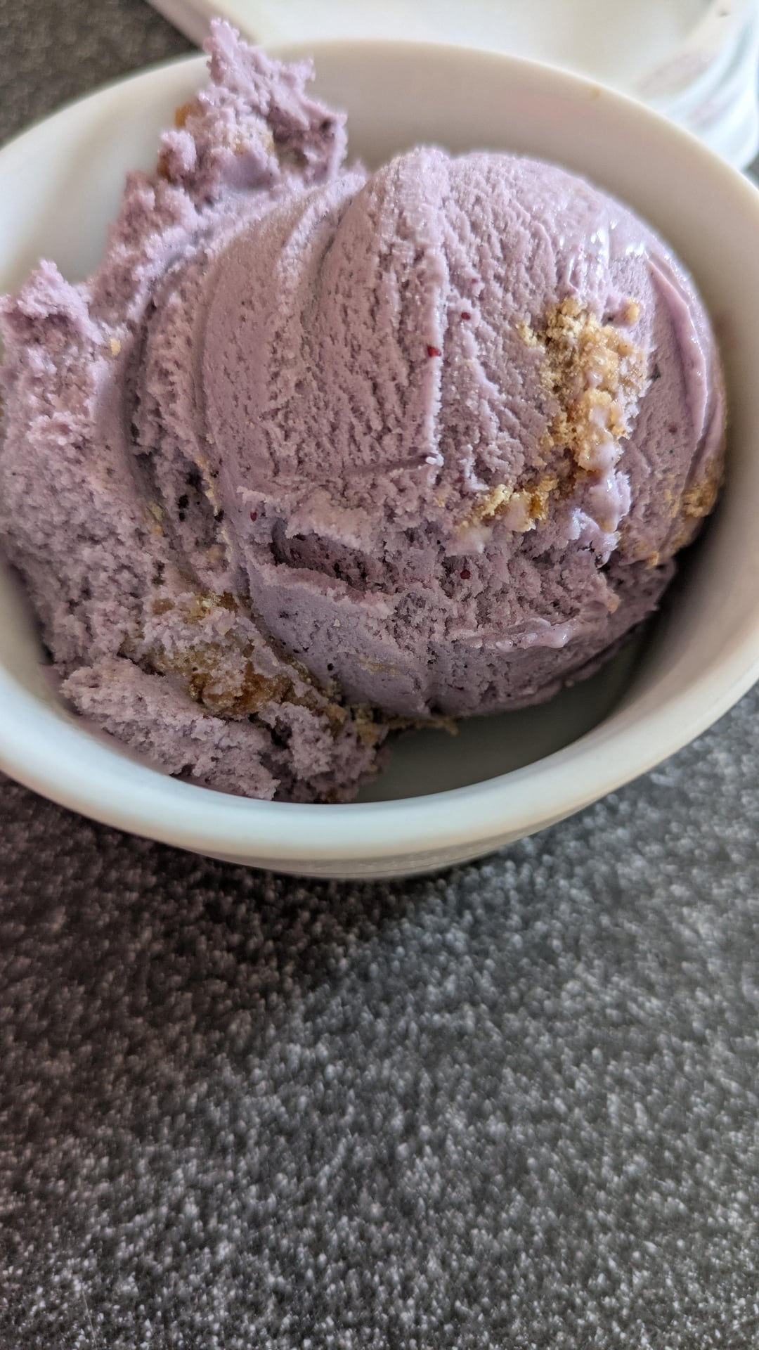 Measure out about 100-150g(or to taste) of the blueberry jam into a medium bowl and slowly whisk in a small amount of the vanilla base until fully combined. Taste periodically with a clean spoon to ensure a strong blueberry flavor.