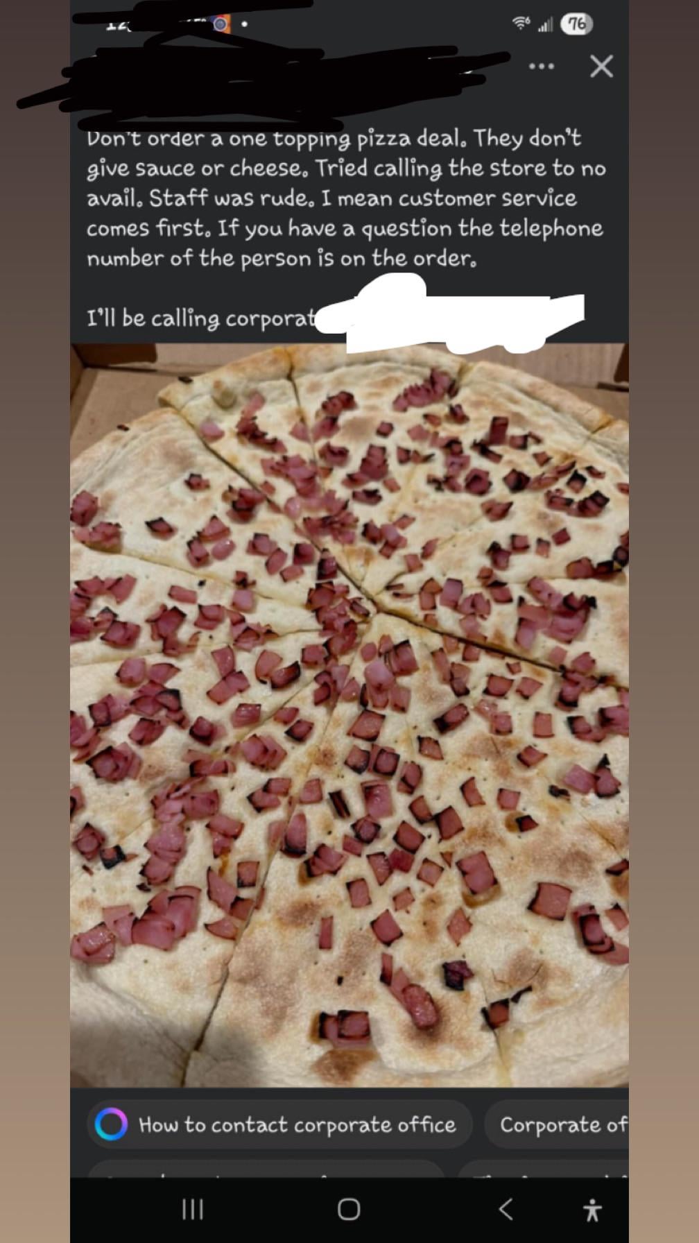 Ain’t even a pizza, that’s just round bread w bacon on it, cut into triangles