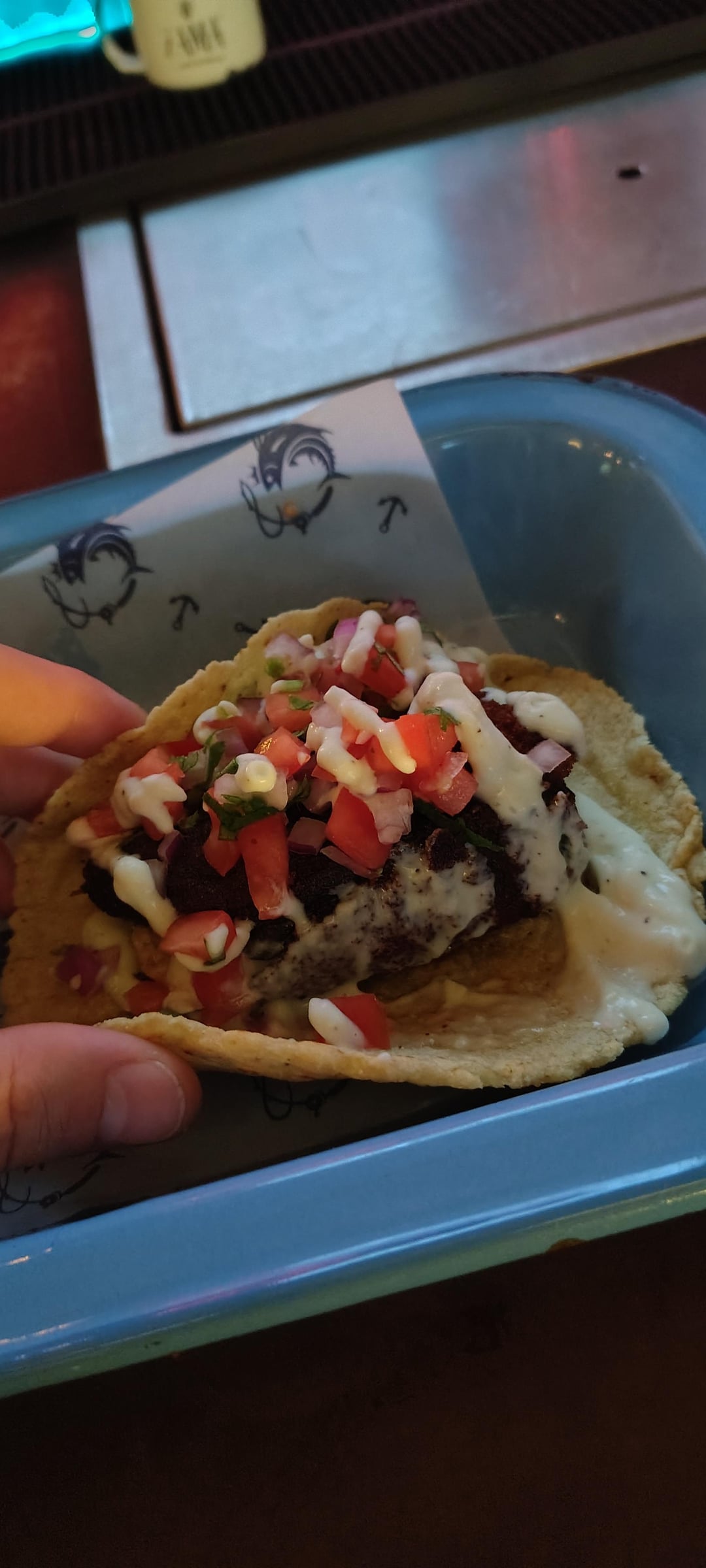 A clever play on a chili relleno.A pepper is stuffed with tuna, fried, and topped with pico and crema, all on a homemade tortilla.$6.00 by Mercuryink Dining and Cooking