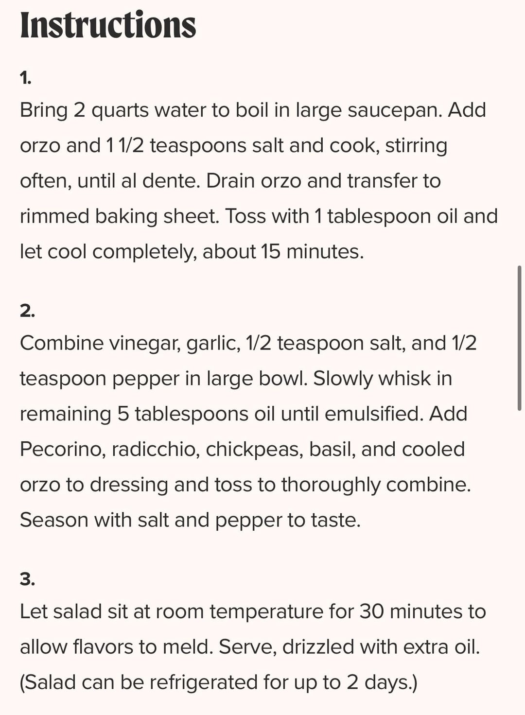 Orzo Salad with Pecorino, Radicchio, and Chickpeas by Ashley Moore from Cook’s Country, February/March 2016