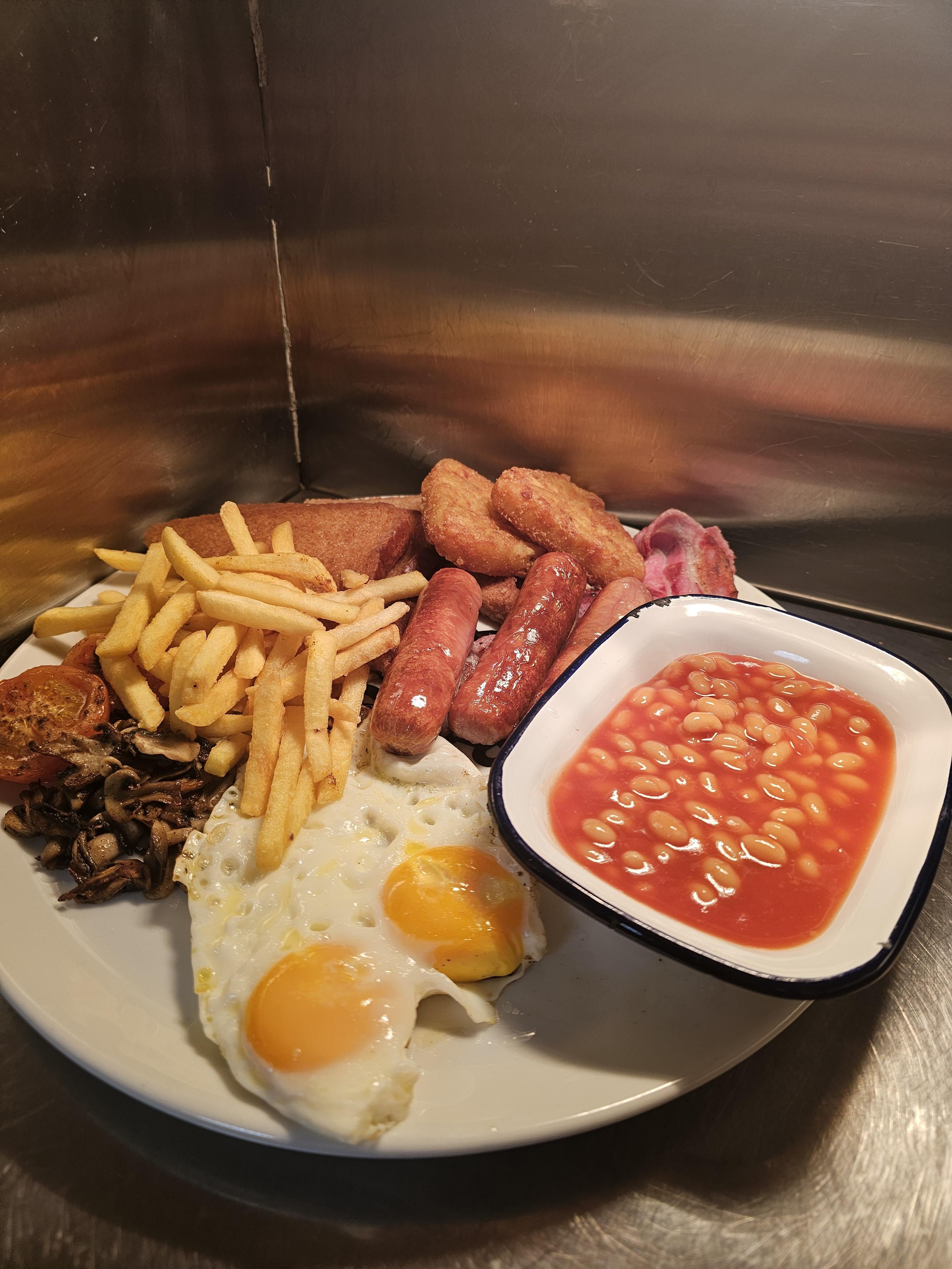 Made this for the maintenance guys at my work….yes I know the beans are separate but I was running out of room on the plate. Black pudding is hiding under the chips.by CaptainCaveMann1 Dining and Cooking
