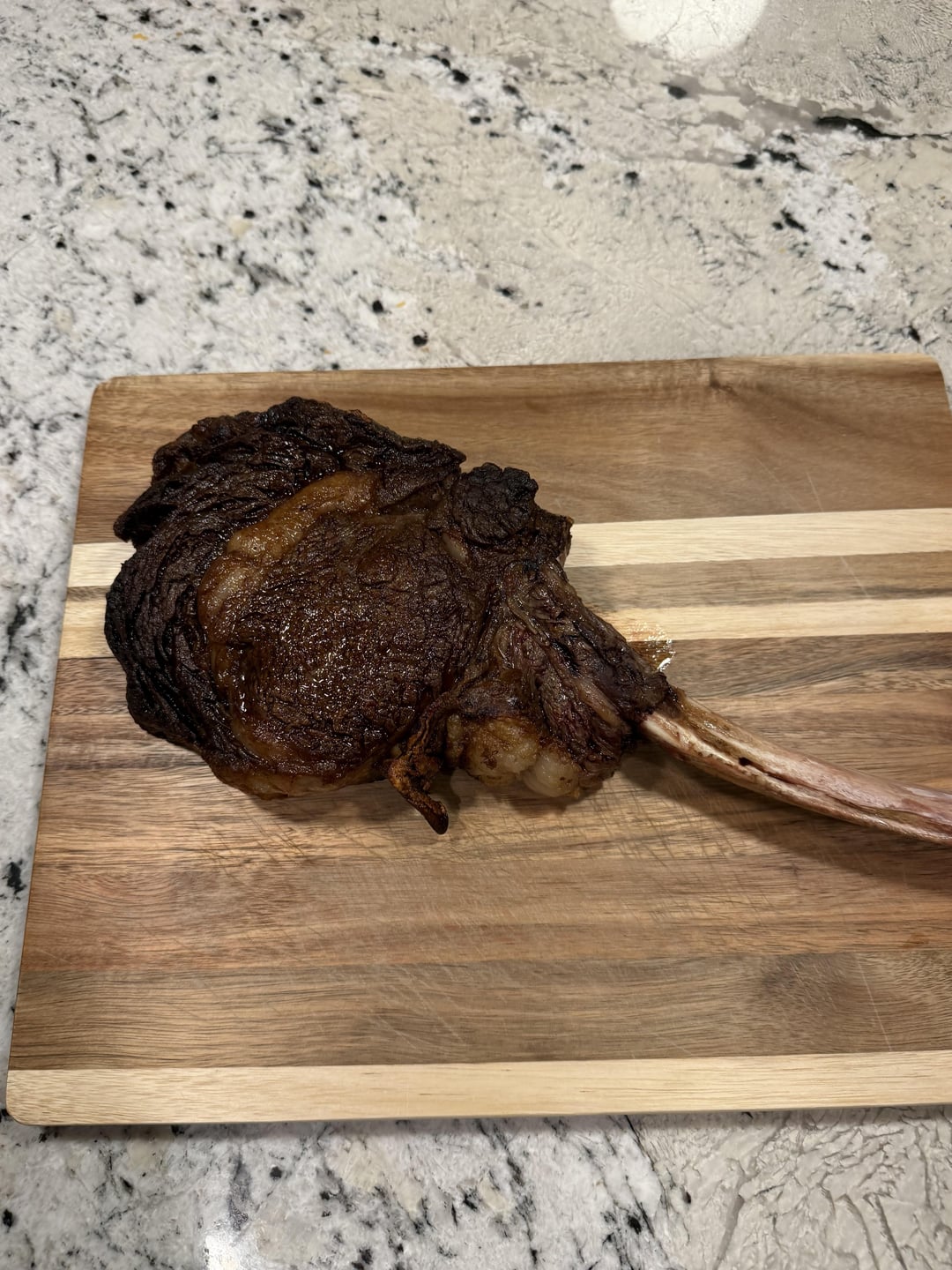 I’d buy a cowboy next time cause your paying for the bone , cowboys have most of the bone trimmed off, as far as how it looks it looks fine, did you enjoy eating it? That’s all that matters