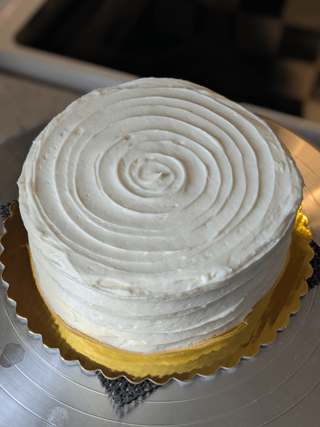 Wow, this carrot cake looks amazing! The frosting swirl design is so clean and pretty. Great job!