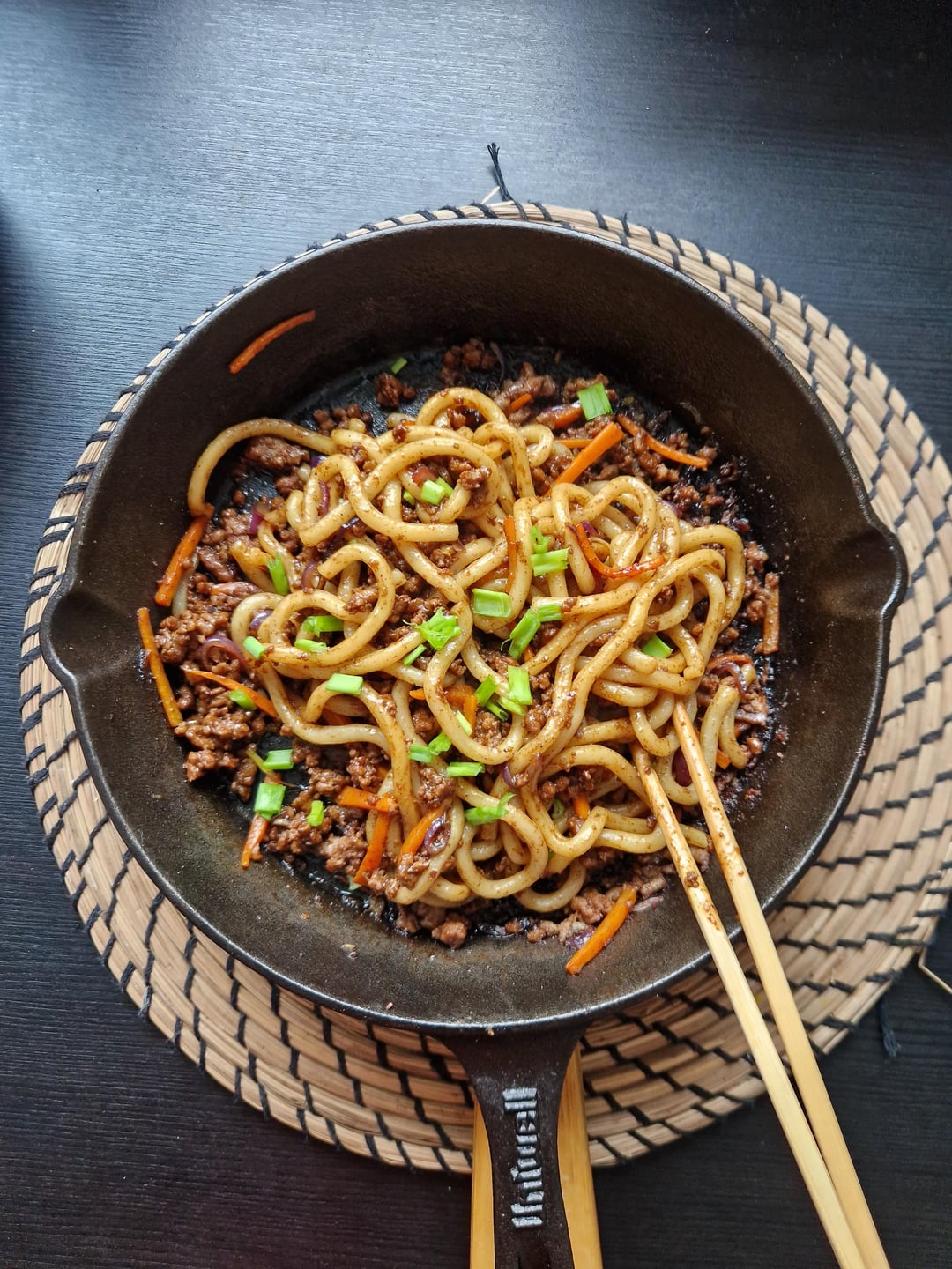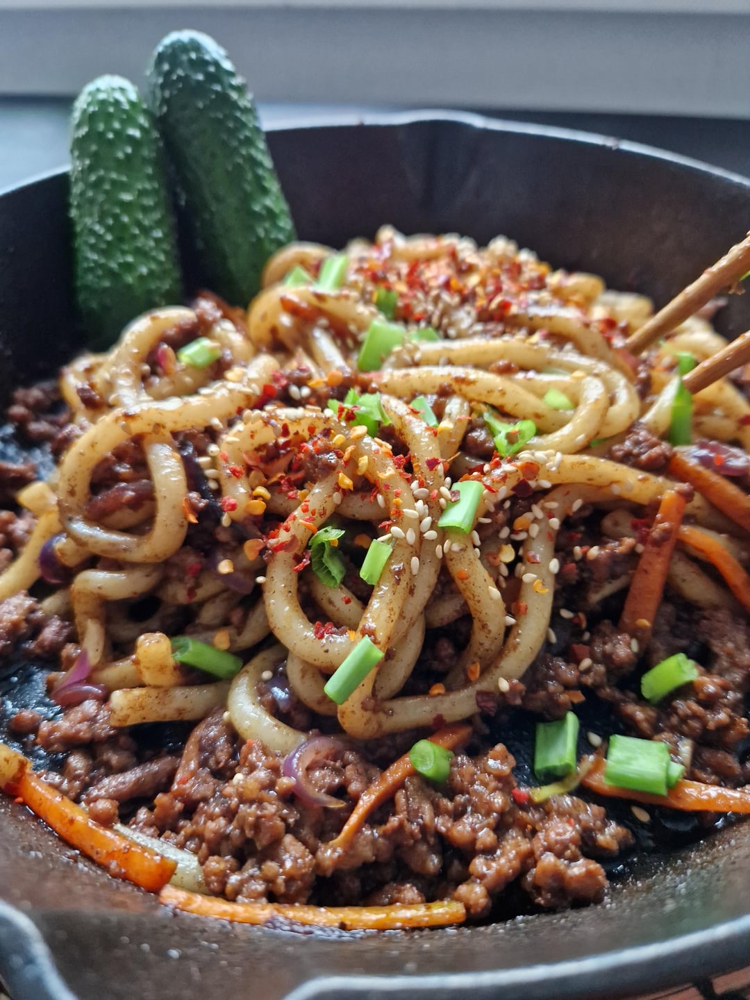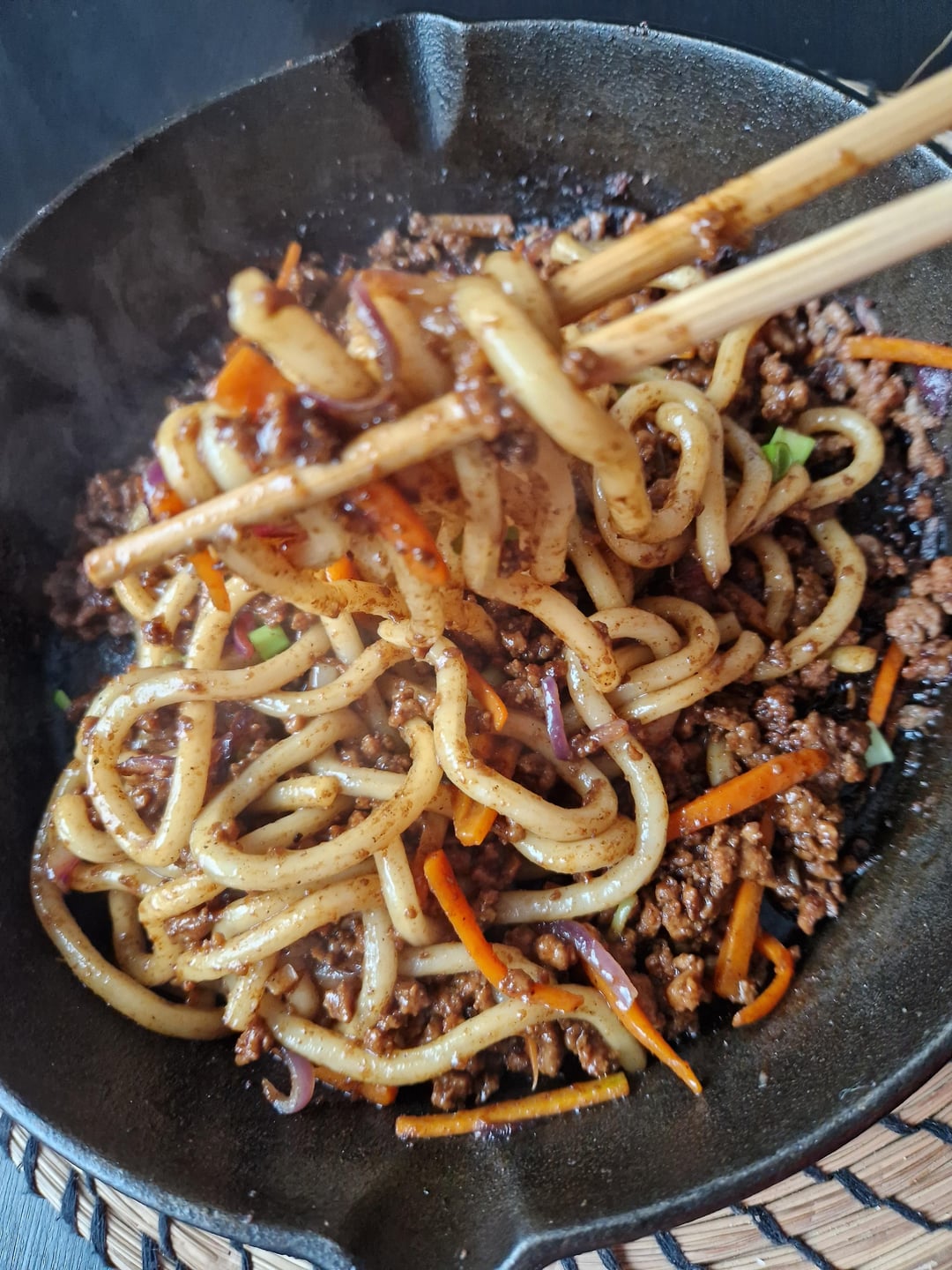 Tried making bulgogi-style pork with udon noodles — sweet, savory, and super comforting. Anyone else mix Korean and Japanese flavors like this? Tips or add-ins welcome!