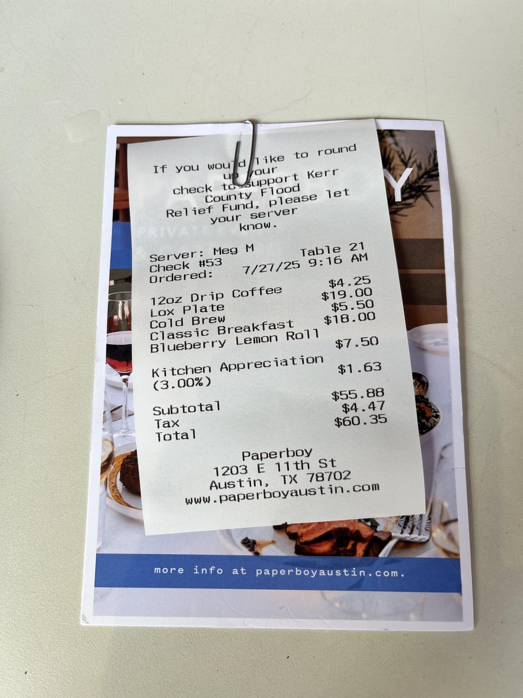 I’ve never understood the hype around this place. The food was… fine? But there are a million great diners and breakfast spots in Austin serving up heartier portions of equally tasty food for a fraction of the price. Is this place just influencer nonsense I’m too old to understand? They can charge 50% more because the toast is stood up vertically on the plate and makes for a pretty picture? I don’t get it.