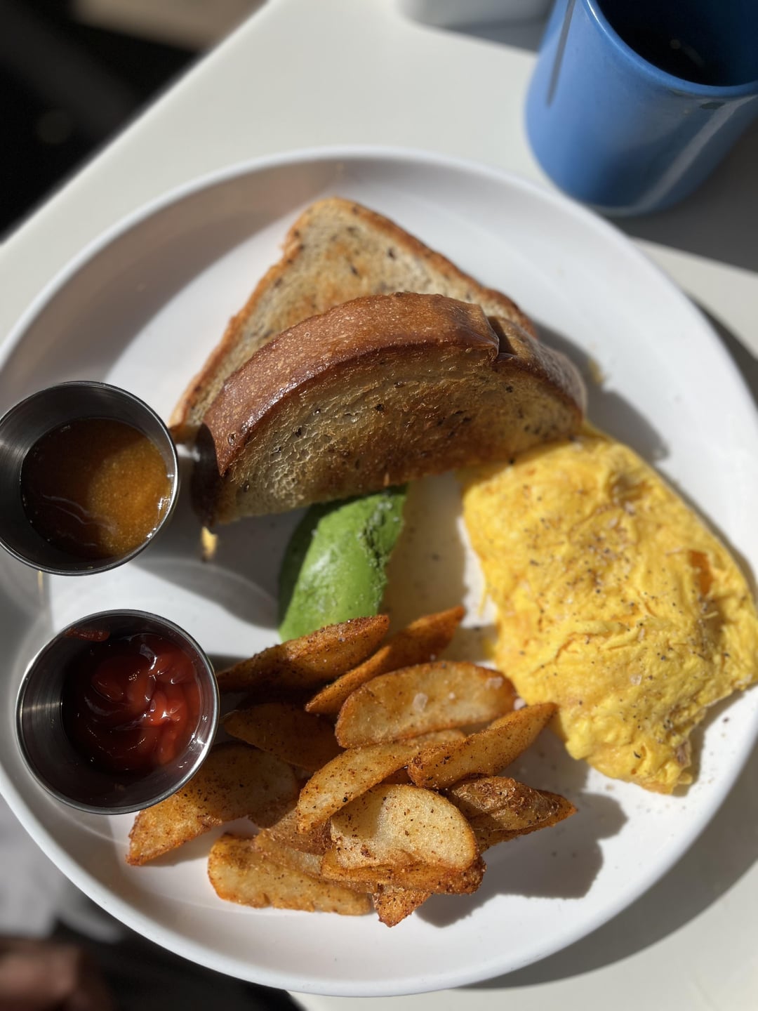 Everything was delicious! The lox plate hit the spot, and the classic breakfast with avocado instead of sausage was perfect. Don’t skip the blueberry lemon roll!
