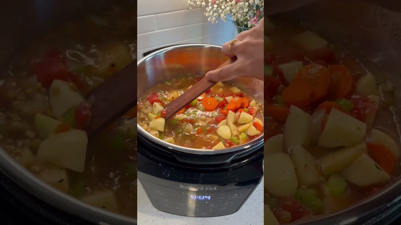 Turn Instant Pot to sauté, add onion, carrots, and celery stalks. Season with salt, black pepper, and Italian seasoning and saute for 3-4 minutes. Add minced garlic, lentils, potatoes, diced tomatoes, broth, and fresh thyme. Cook for 15 minutes, release the valve. After 10 minutes add the spinach and grated parmesan cheese.