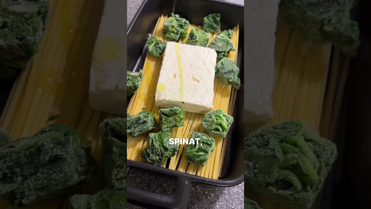 feter spinatpasta aus dem Ofen total einfach gemacht und super lecker dafür die Nudel in eine Auflaufform geben Knoblauch feter Spinat Olivenöl und Gewürze dazu jetzt noch das heiße Wasser angießen ab in den Ofen und so kann das ganze Fett das ganze kann man jetzt noch mal kräftig durchmischen und bekommt richtig geile feternudeln