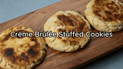 Top with a sprinkle of sugar and torch for that classic Crème Brûlée crackly shell — or in our case, brand the tops!