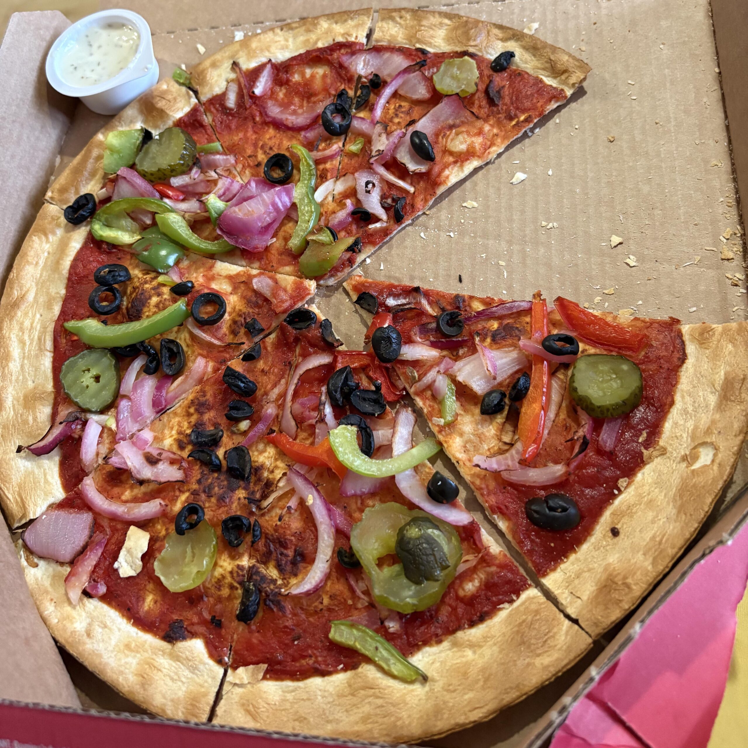 cheeseless is already a choice but to go all veggies topping on top of that is another choice …