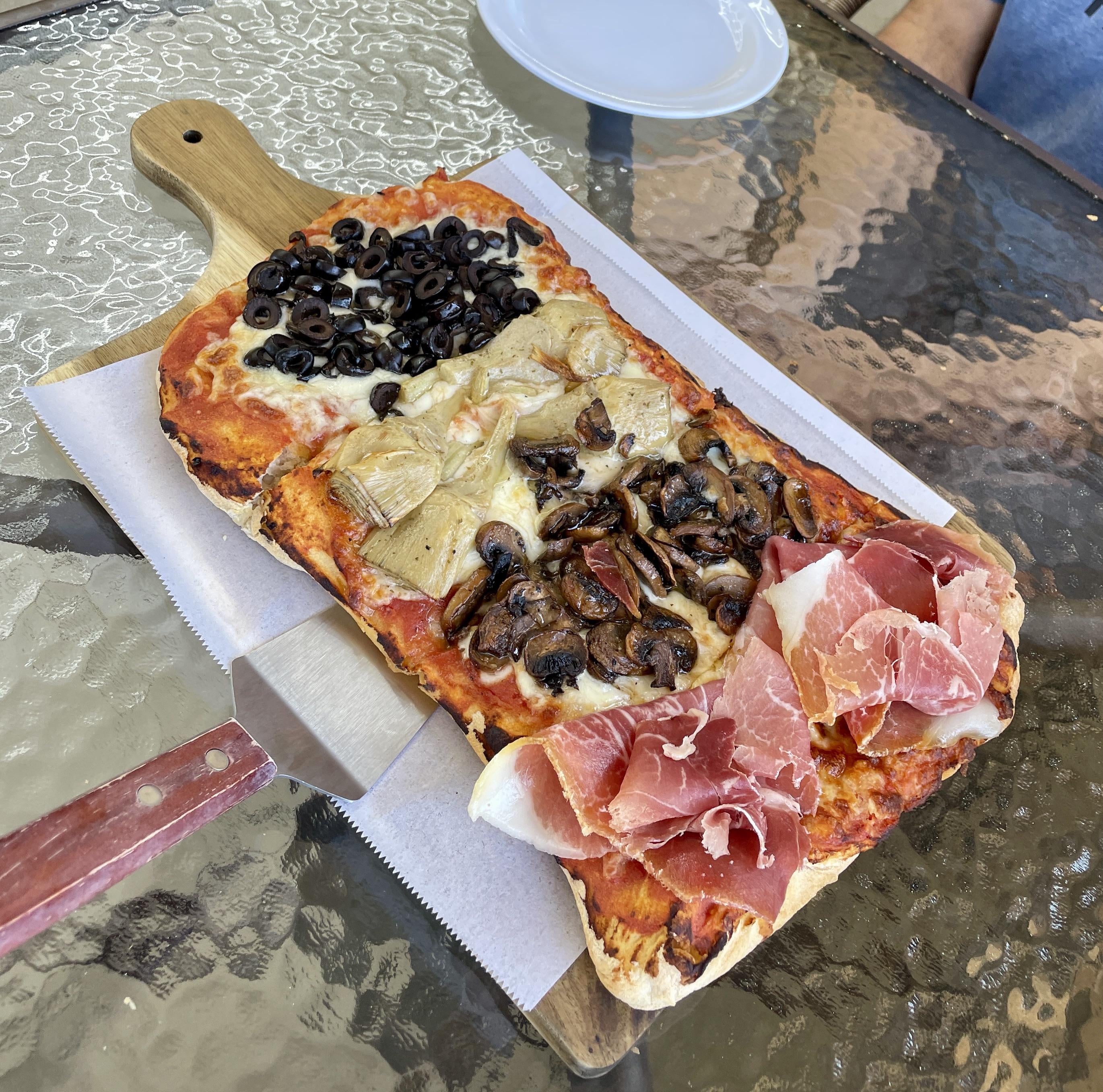 Delizie Romane, delightful Italian cafe and bakery in Pasadena. While we were there, two customers came in speaking Italian to the shop owners. We got the Quattro Staggioni pinsa romana ($20-very filling for 2) and it was perfect! We also took a ricotta pistachio dessert to go, but also want to try their marittozzi since trying it in Italy a few years ago. They also have fresh focaccia, pasta, and sandwiches, not to mention the baked goods. Owners were so sweet, too!