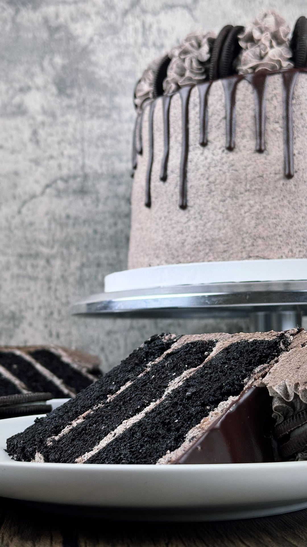 I used this recipe for the cake: [https://www.lifeloveandsugar.com/chocolate-oreo-cake/](https://www.lifeloveandsugar.com/chocolate-oreo-cake/)
