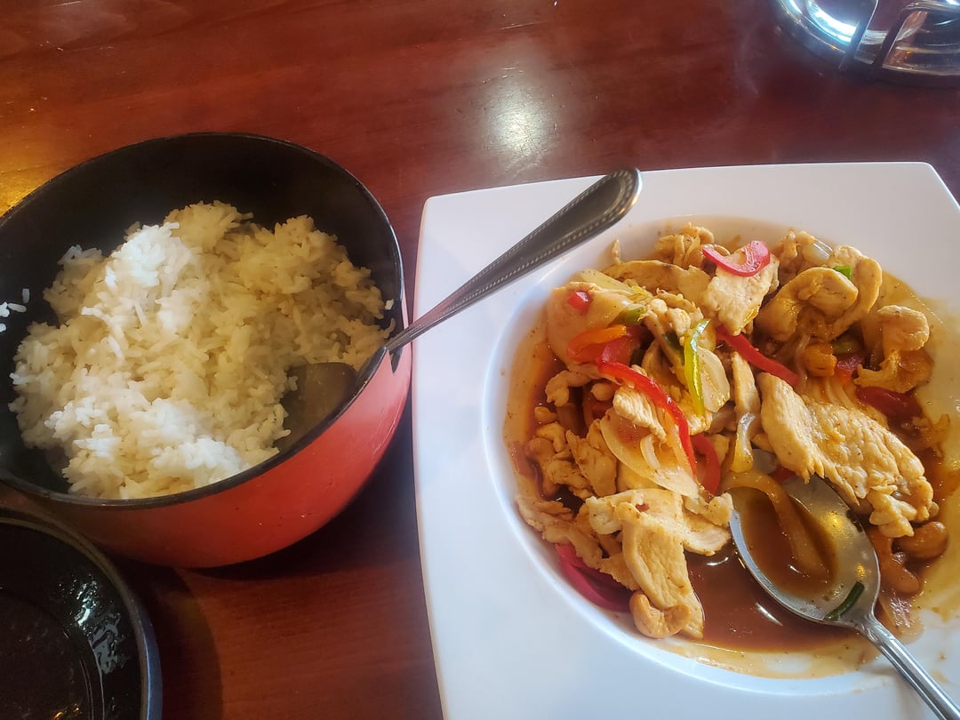 Very fair prices for very legit Thai food. Walk up window or they will take your order at your table if you are eating there. Small parking lot in back! And plenty of street parking. The egg rolls were crispy, not over cooked or oily. Good flavor and size. The cashew nut dish was full of flavor, chicken had great texture and veggies were still slightly crispy. The Eggplant dish is the same. Vegetables not soft, Eggplant was still eggplanty, not cooked to being soft and having the meat separated from the skin.