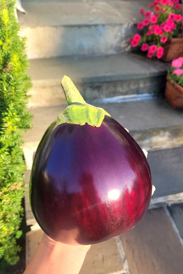 Every photo I see of this cultivar is super bizarre/awkward so I am trying to uphold the tradition. Anyways this is a big girl. It looks like I put a balloon in my fridge. Haven't tasted it yet but am thinking of doing a parmesan.