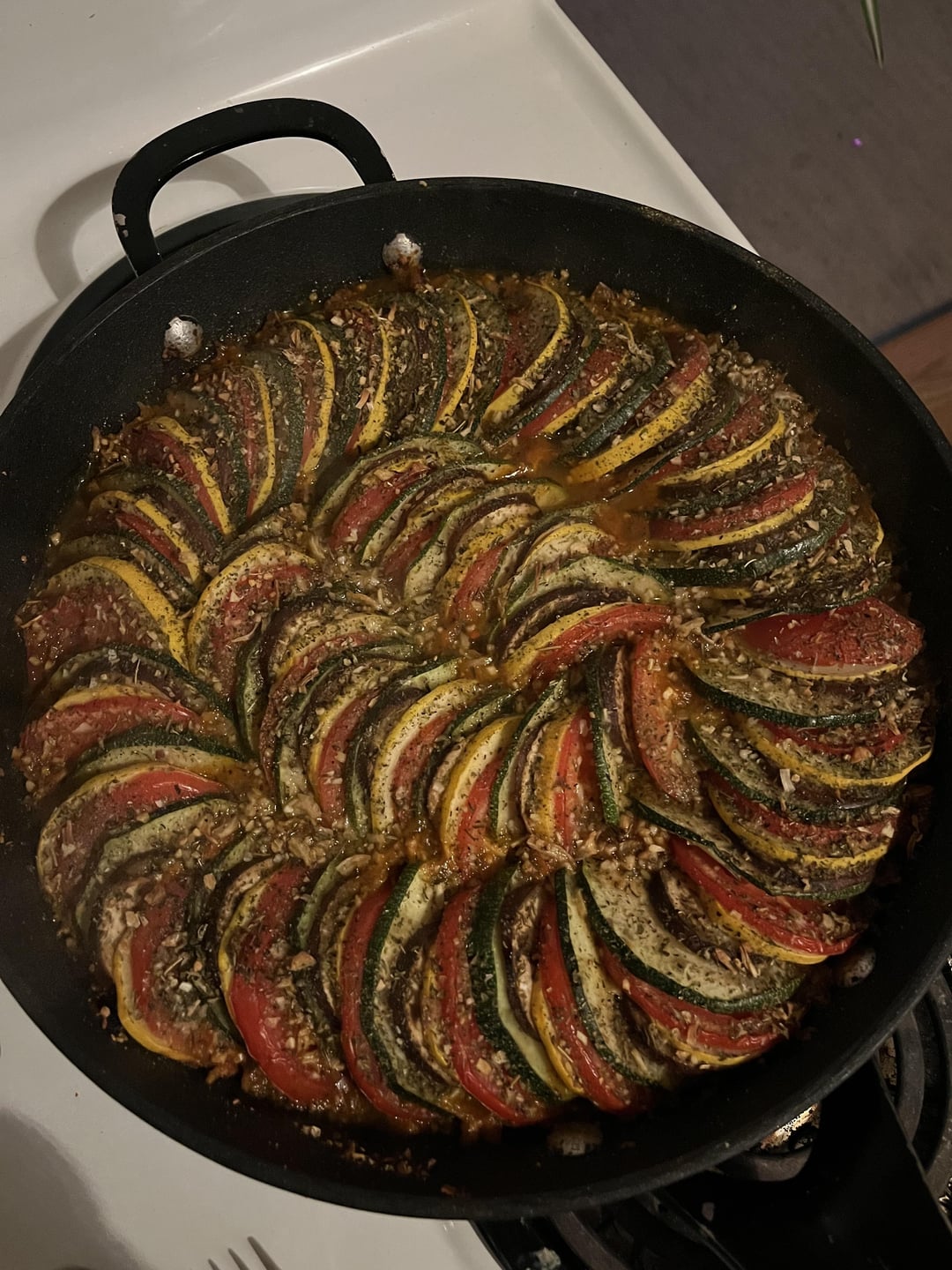 https://momsdish.com/ratatouille-recipe by Careful_Drag_3353 10 Comments Fuzzy_Welcome8348 6 months ago Well done!! Rule-Of-Thr333 6 months ago Is cooking, not baking. southblksugar 6 months ago Baking typically refers to cooking. If he placed and cooked this in the oven … Skylinesunhine 6 months ago Did a rat help you make this? 😆 Unusual_Document5301 6 months ago Remy would be so proud! lifeuncommon 6 months ago Literally my favorite dish ever! Really appreciate the care you took with layering. Evening-Key7667 6 months ago Idc about the discourse on cooking over baking. This looks incredible. Splendid job, OP! You really did that! Remarkable-Bowl-3821 6 months ago Very pretty Tsqwared 6 months ago Looks so pretty. woodma134 6 months ago Looks divine.