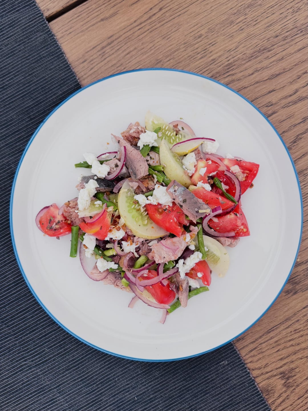 An adaptation of Yasmin Fahr’s recipe from NYT.Added some cucumber, fresh cheese, anchovies and green beans with an oregano and garlic vinaigrette.Best way to fight the heat 🙂 by untitled01 Dining and Cooking