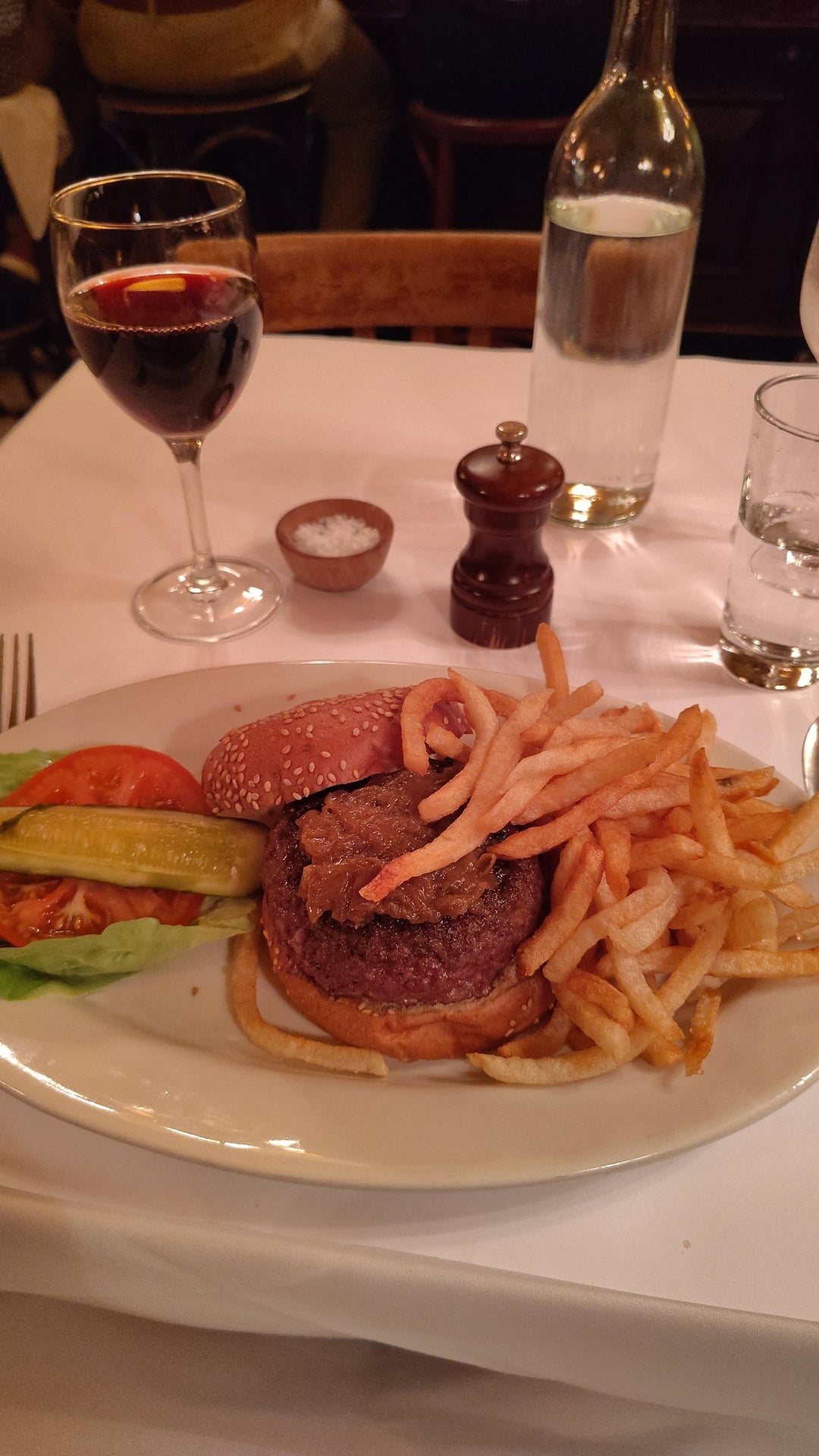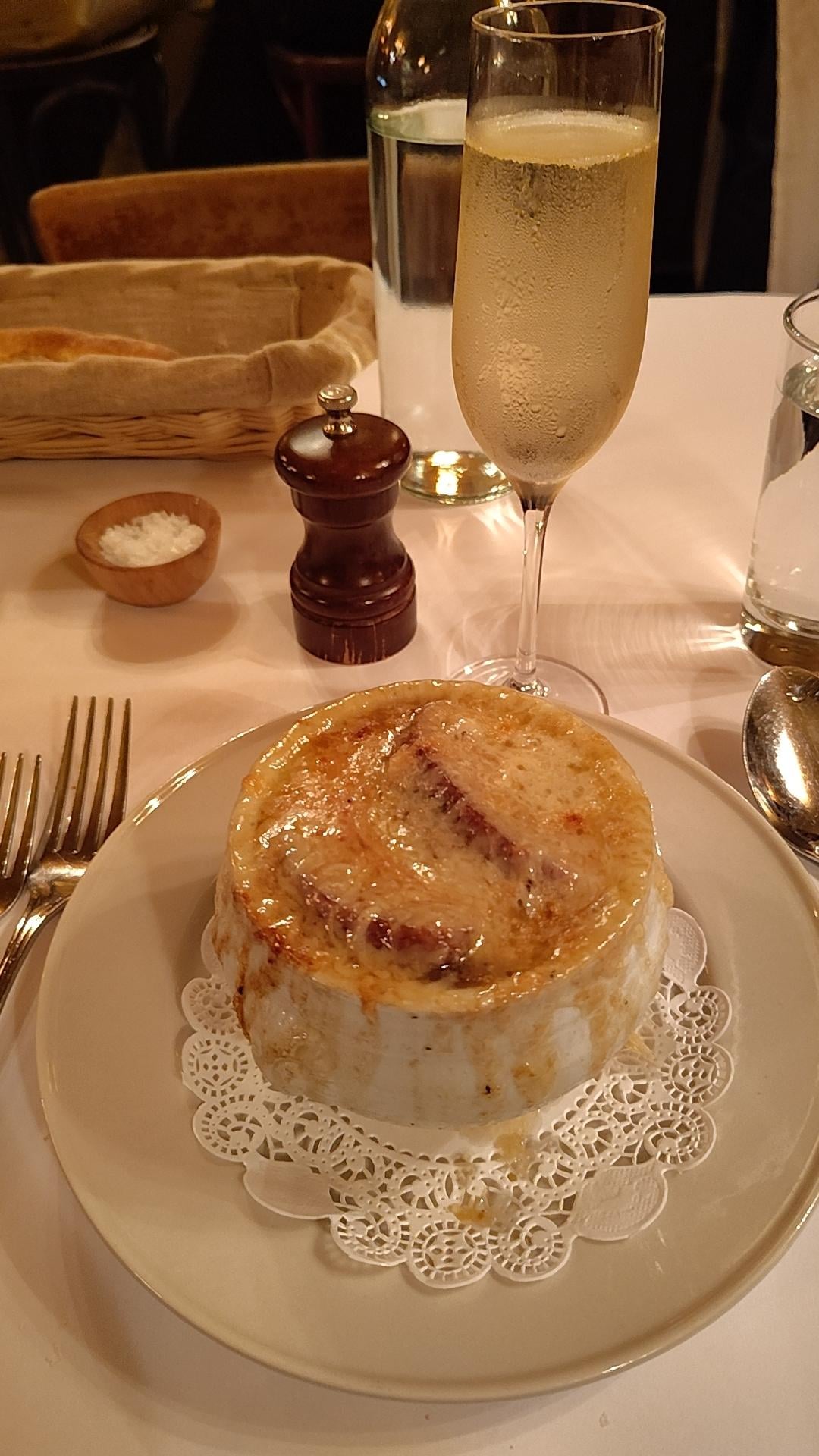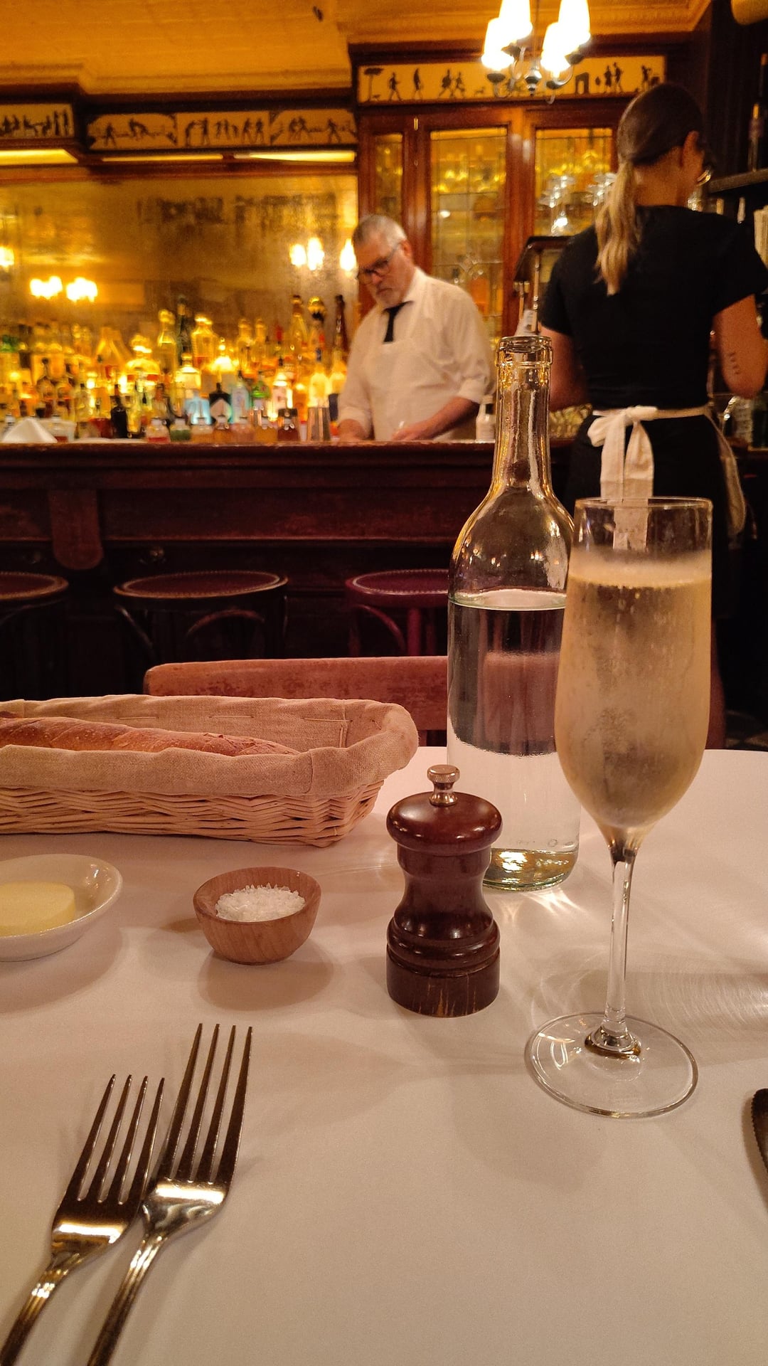 Table at Minetta Tavern with free solo champagne