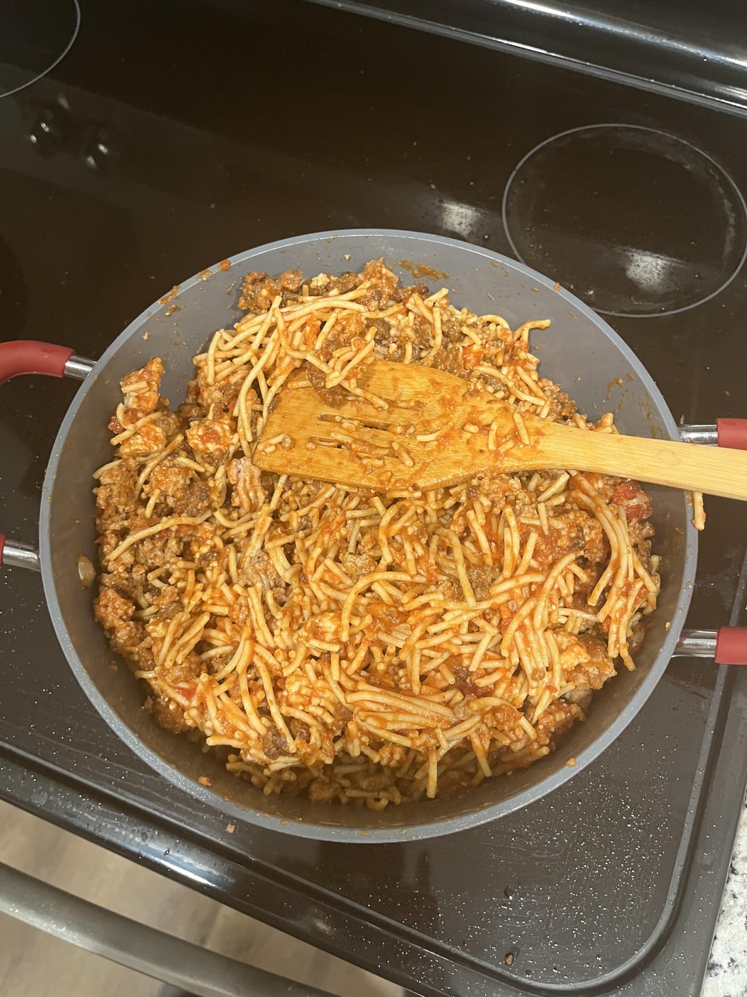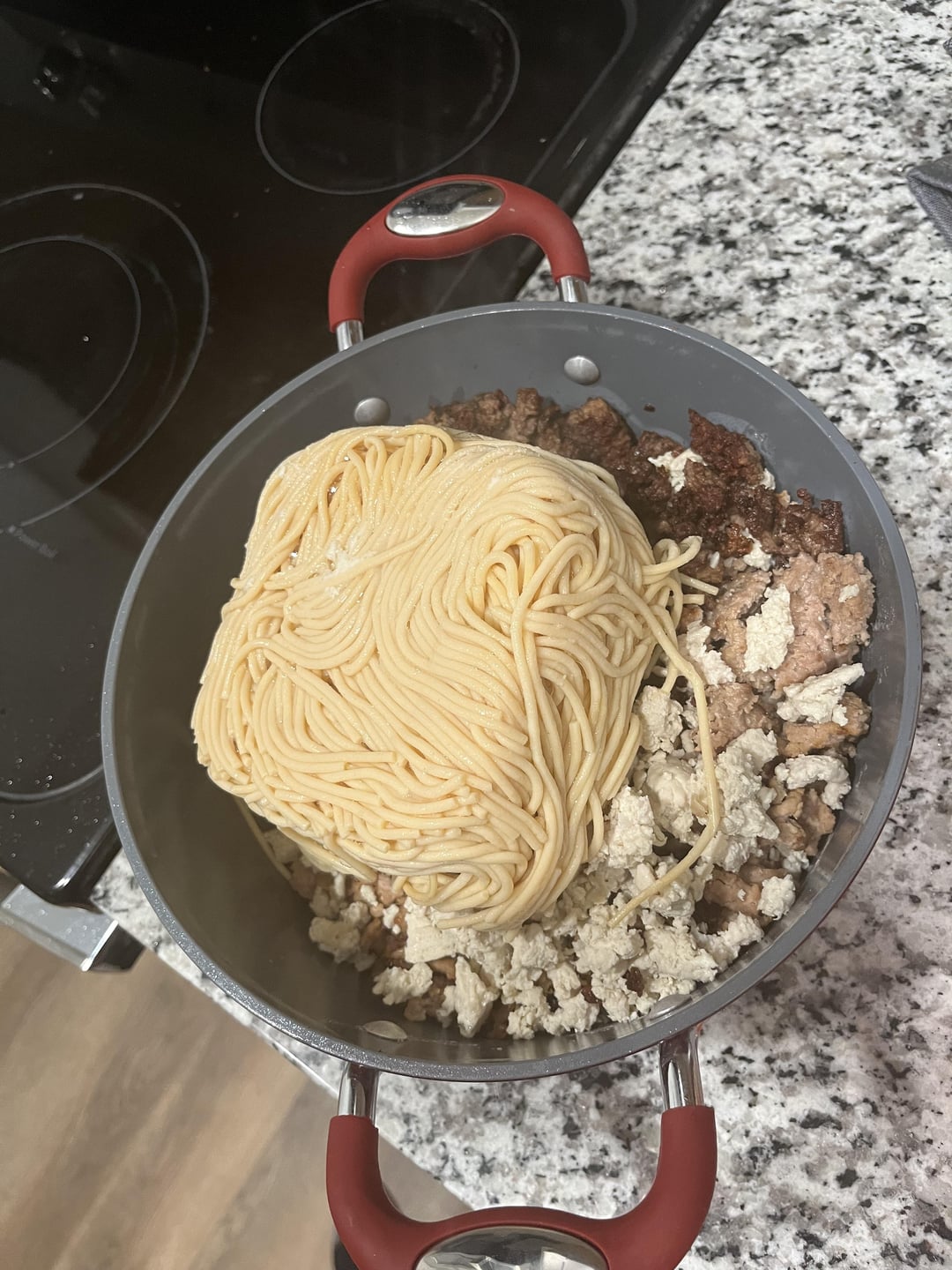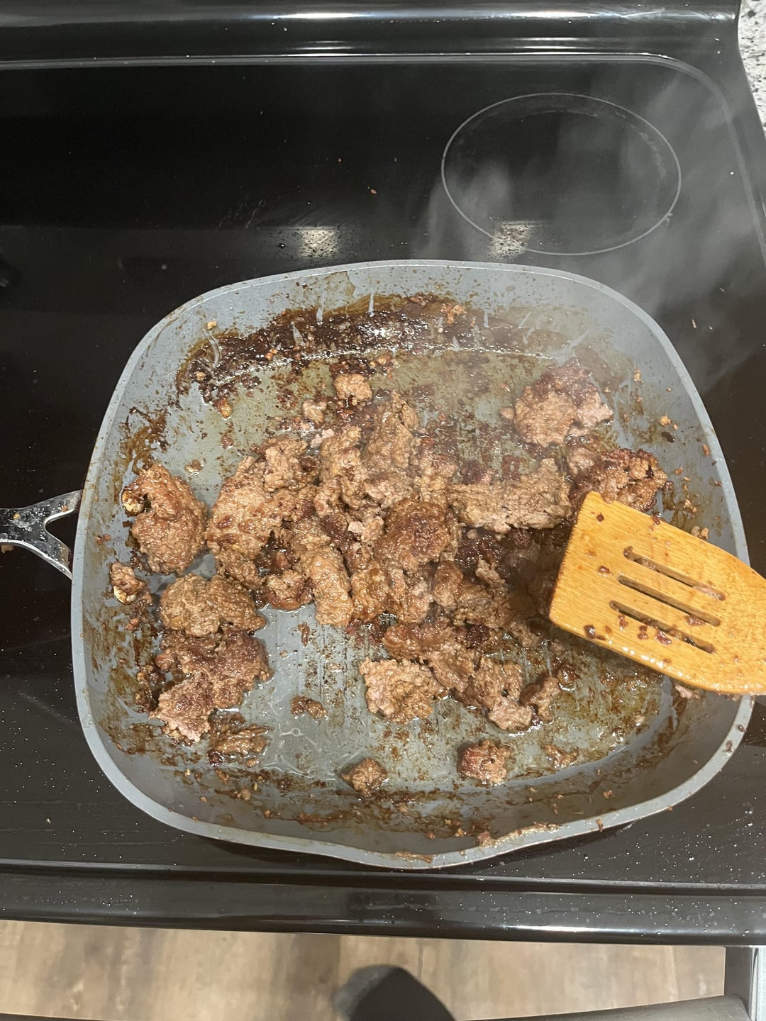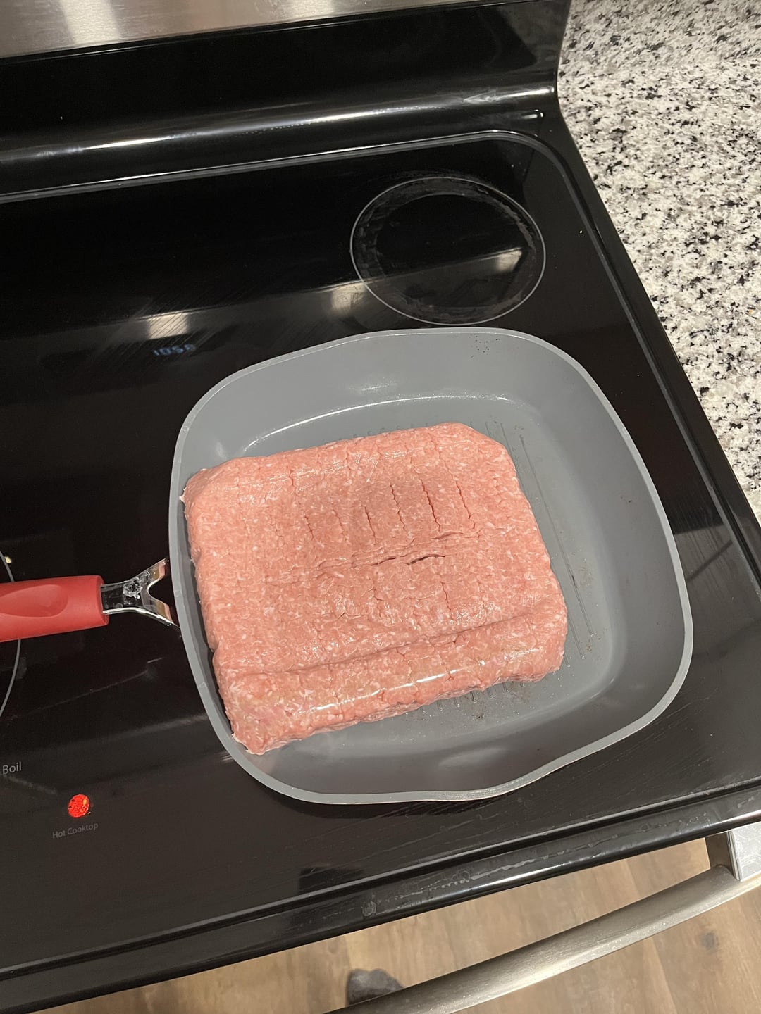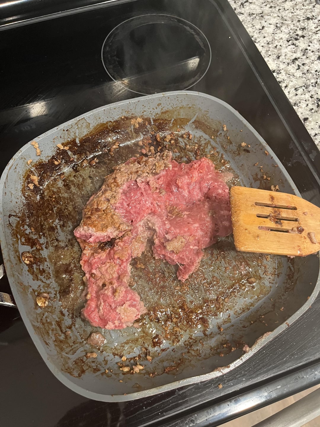 I don’t think I’ve ever seen anyone just plop a whole brick of ground meat into a pan before. I usually break it up into little bits so it cooks more evenly. Not a criticism btw!