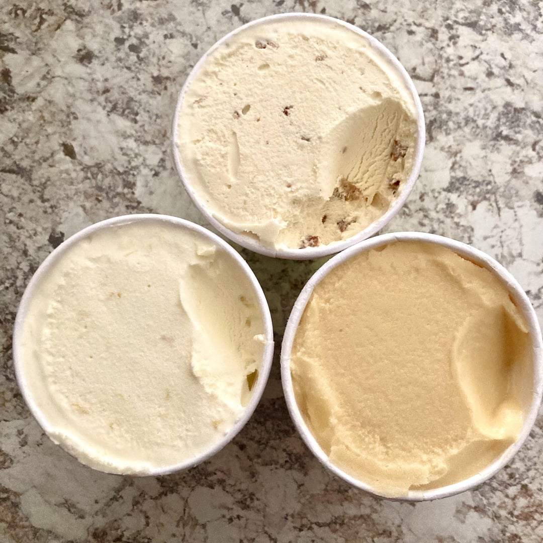 - Haagen Dazs Vanilla & Aldi Specially Selected Vanilla – both are nice sweet cream flavors.