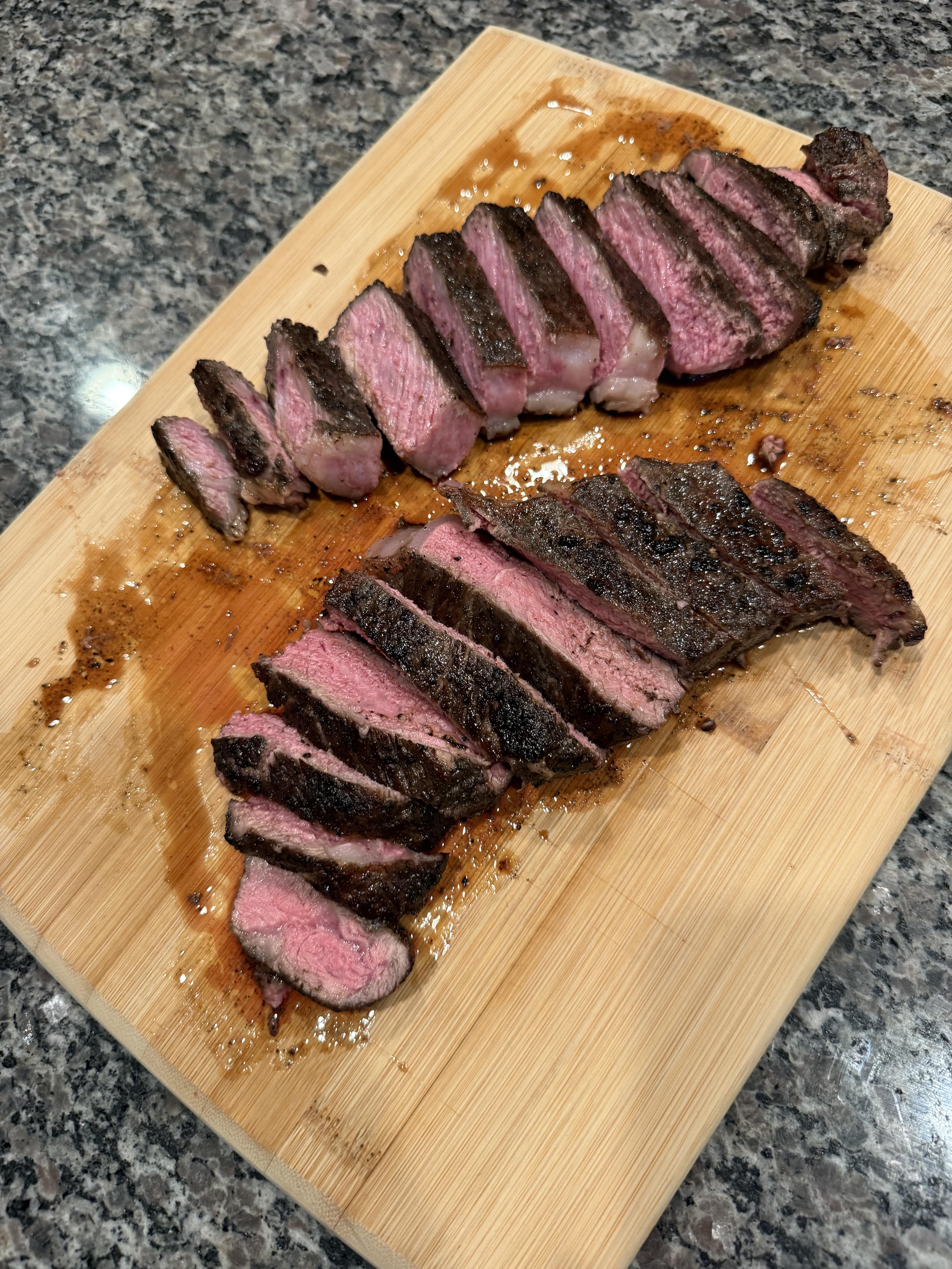 How’d I do boys by Early-Regret-9790 5 Comments Lakeman3216 7 months ago Beautiful americanmuscle1988 7 months ago Man that looks good RemoteRevenue3426 7 months ago juicy JUZE101 7 months ago Perfect, crust looks good, lots of juice, not sure if you rested it before cutting, otherwise looks yummy Flashy_Tooth_5597 7 months ago Why do people slice up a beautiful steak like that? I want the whole bastard in front of me and I destroy it one juicy morsel at a time.