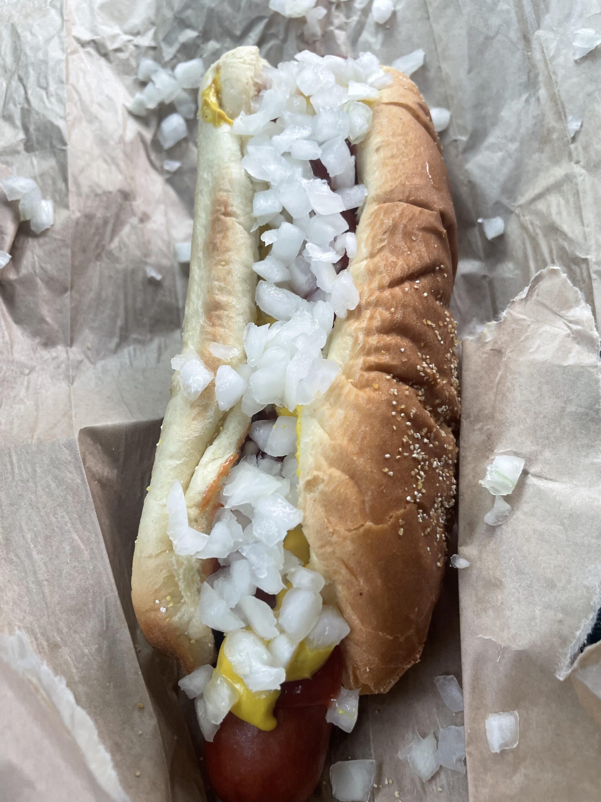 2. I don’t know if this is a Costco dog or not but it reminds me of when you find a Costco with the onions in the rolling condiments dispenser. Cover the dog cover the pizza yum!