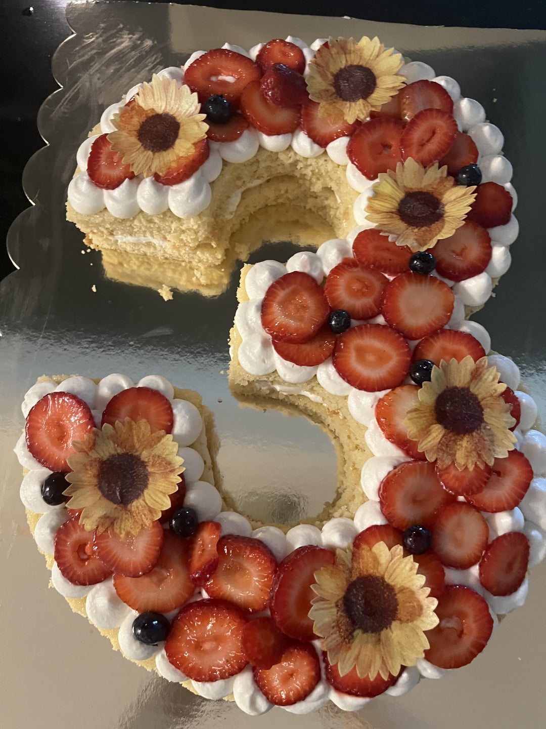 Ignore how badly the cake boards are cut lol the scallop made them too big for my boxes xd. I’ve only made one cake before this so I’m happy to see some improvement!