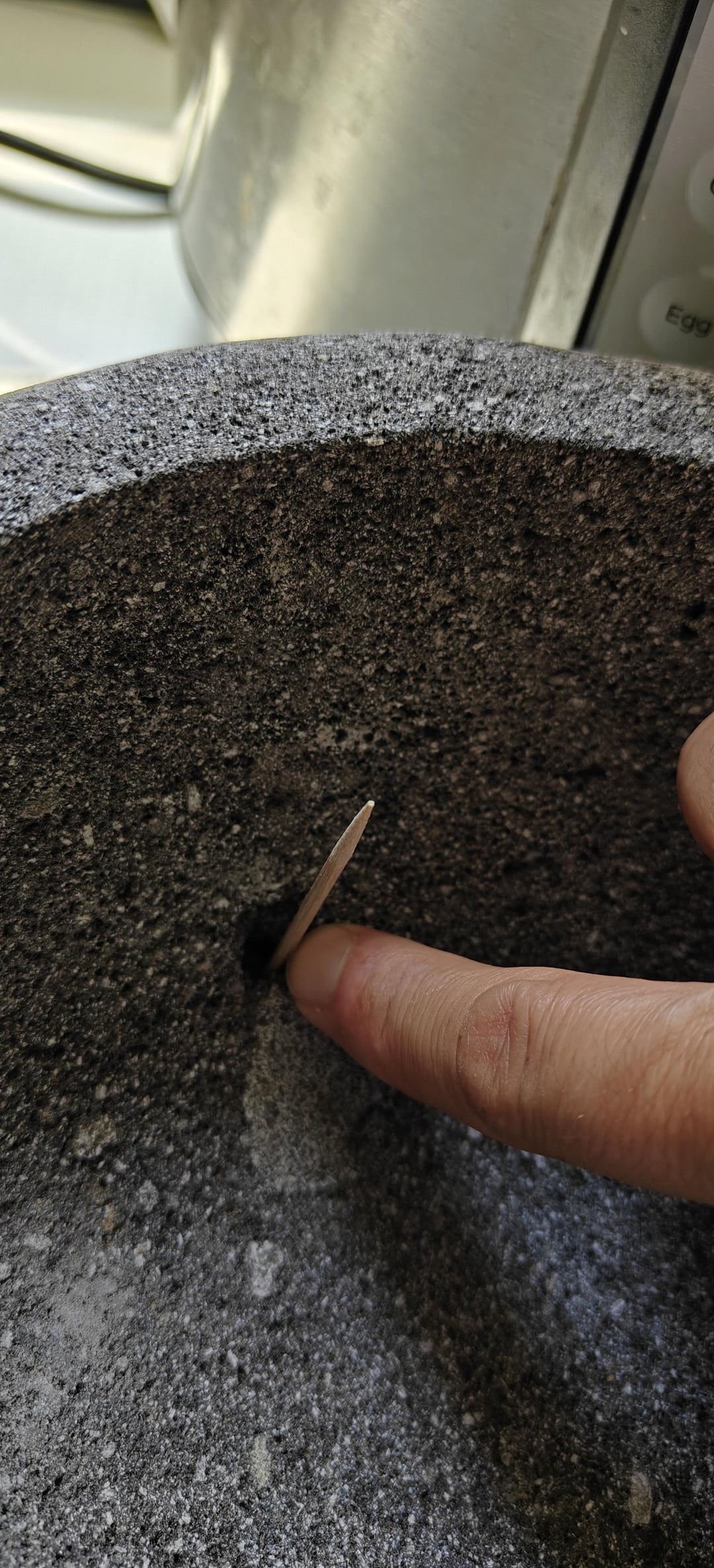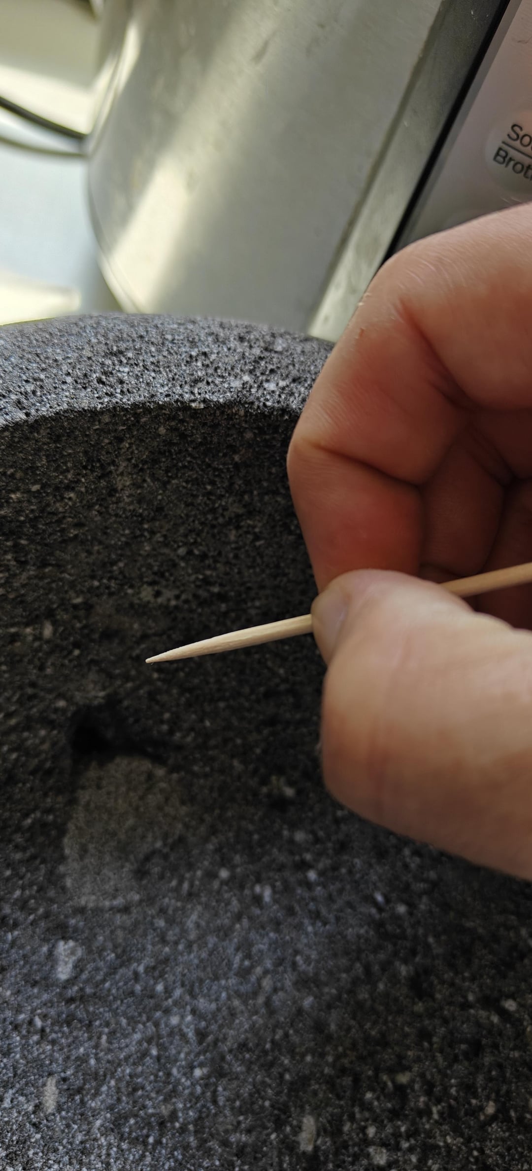 I recently got a molcajete with a very deep hole in it (1 inch). Clearly not functional and not a normal sized divot.