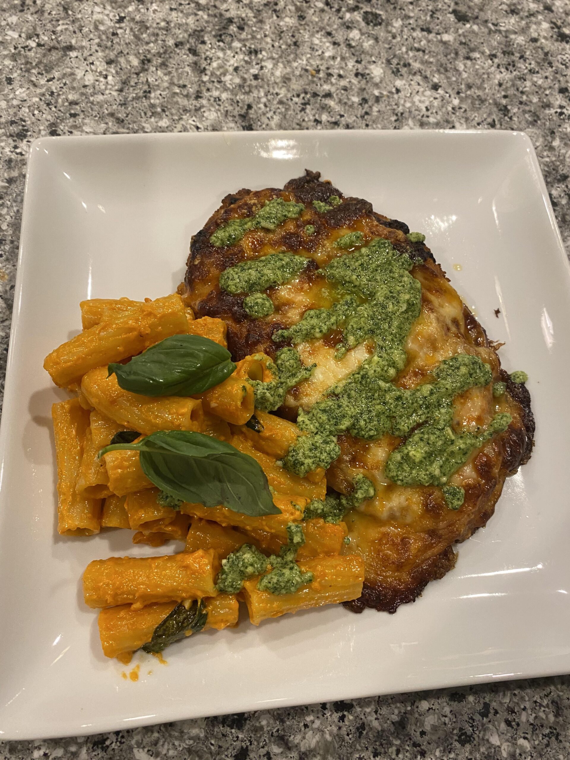 [Homemade] Vodka Chicken Parmesan with Pesto!
