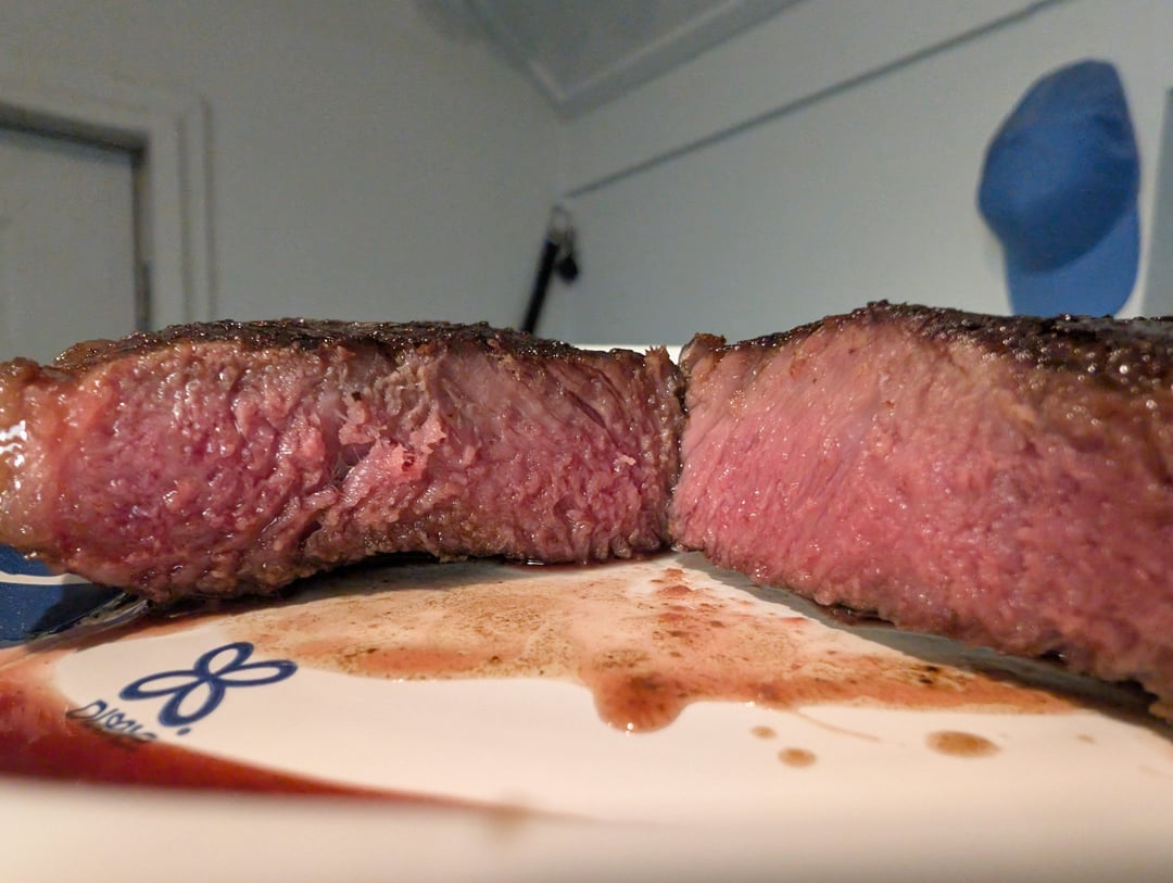 Any recommendations or comments appreciated, always looking to get better. Simple salt pepper garlic powder seasoning. Next time I cook this steak (was a 2 pack) I’m kicking it down to 131 and letting it go for 3 hours, wasn’t through and through sous vide tender.
