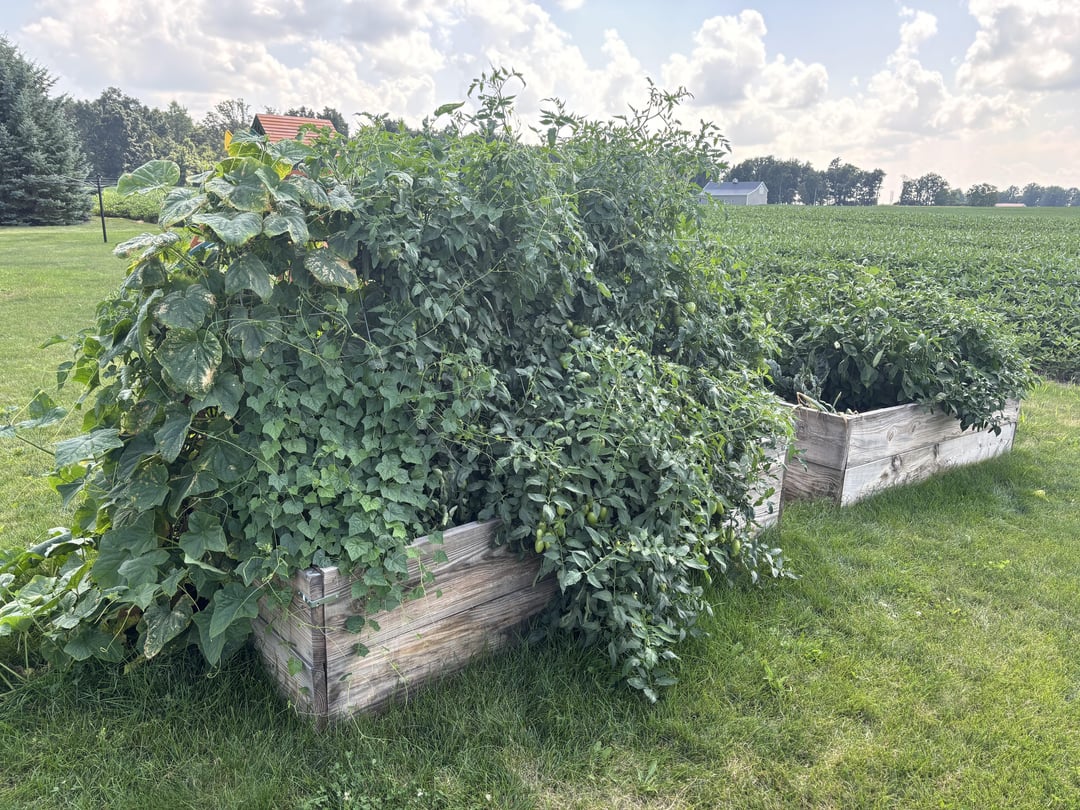 Yes, I put too many vining plants near each other… I just trimmed of like 20 feet of pumpkin vines just so I could mow