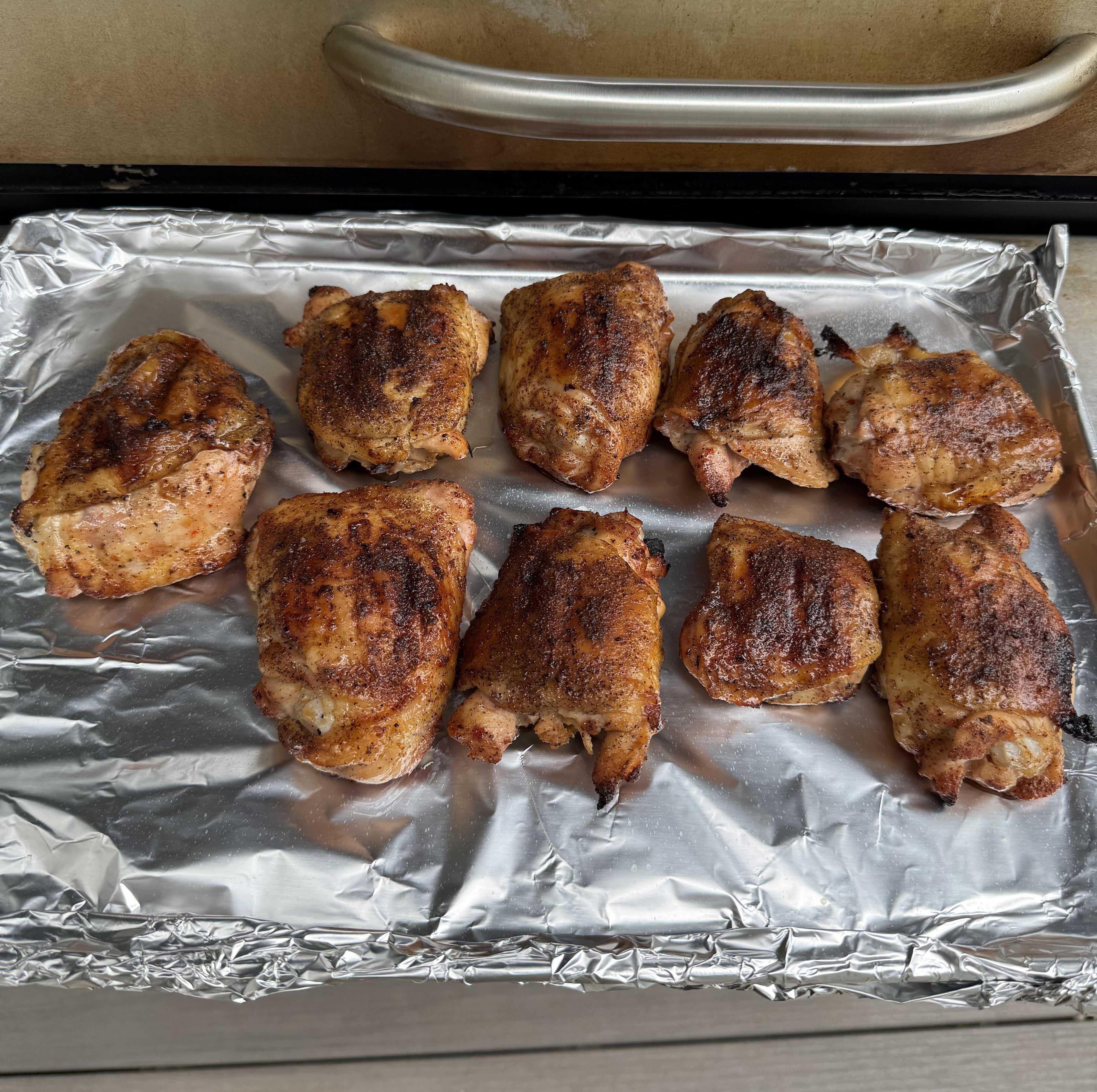 Bad storm coming this evening, so I had to get my chicken thighs on early. Just have to reheat them later. Smell’s glorious!