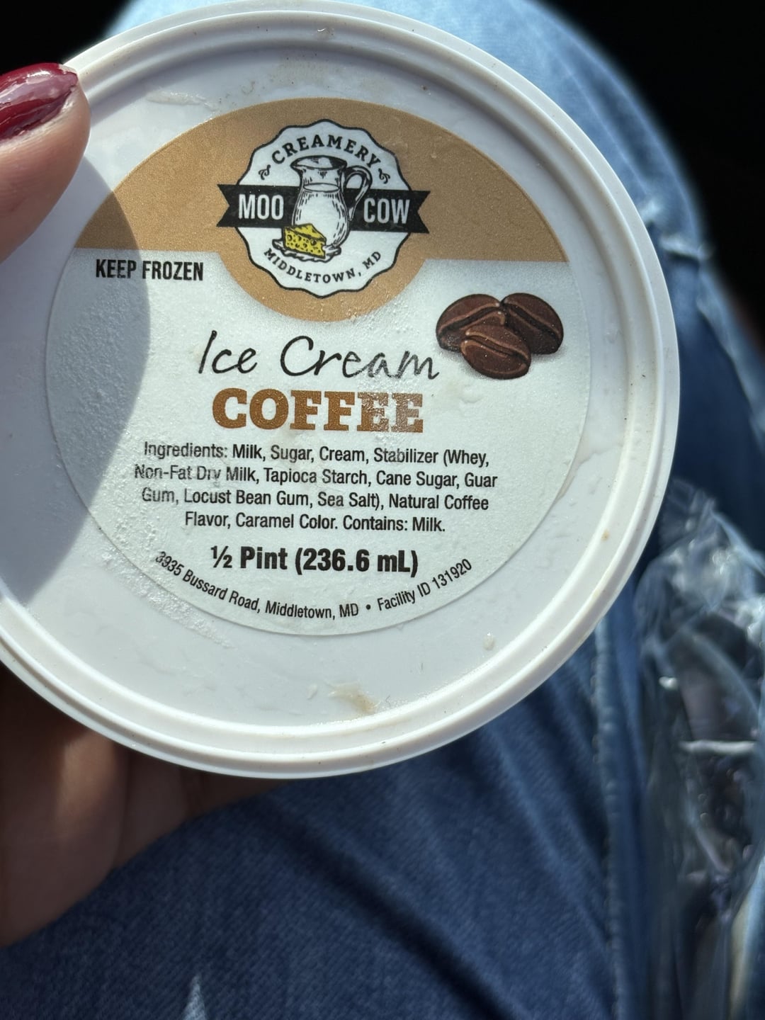 Stopped in to buy some chocolate milk and got tempted by this delicious cow-to-cone coffee ice cream! I’ve also tried the cookies and cream, strawberry and peach flavored ice cream for here, but I forgot my cooler and could only take one 1/2 pint for the road, as I live an hour away. They have a scoop shop on the weekends, but on the week days all they had available was their pre-packed half-packed pints.!