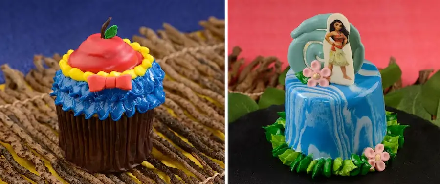 Snow White Cupcake: Vanilla cupcake with caramel apple filling, white chocolate-dipped caramel buttercream, and fondant décorDisney’s Polynesian Village Resort