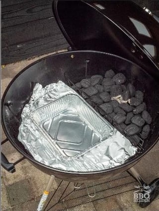 I use disposable cookie sheets. They fit nearly perfectly in the indirect side next to the slow n sear. You just need to bend up the corners a little bit. Works great, then chuck it if needed.