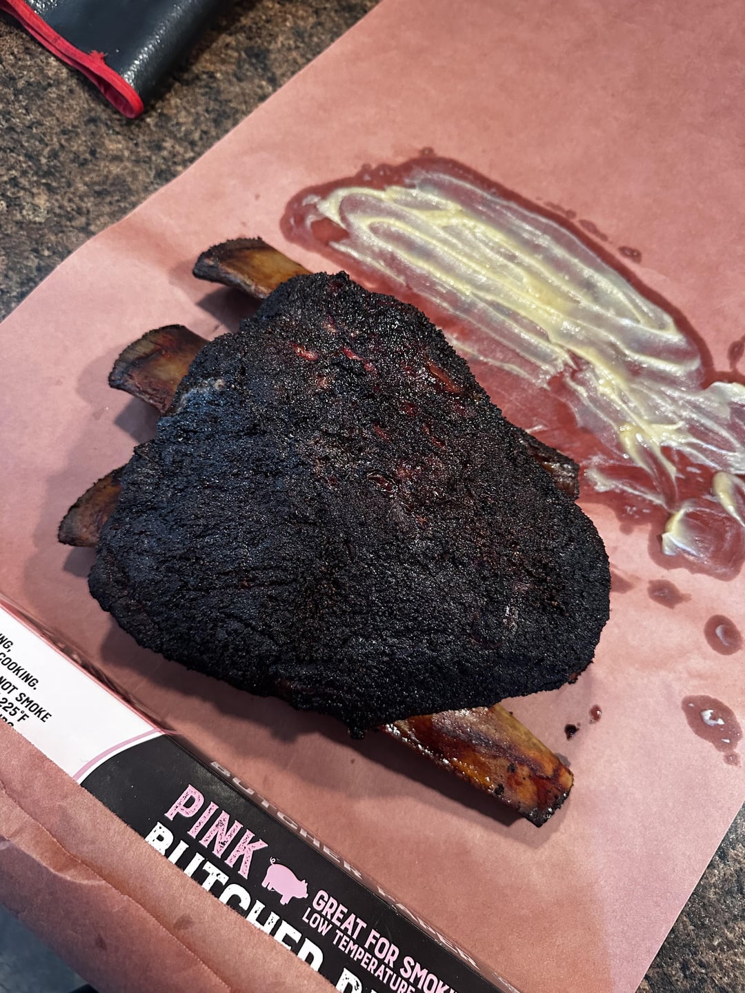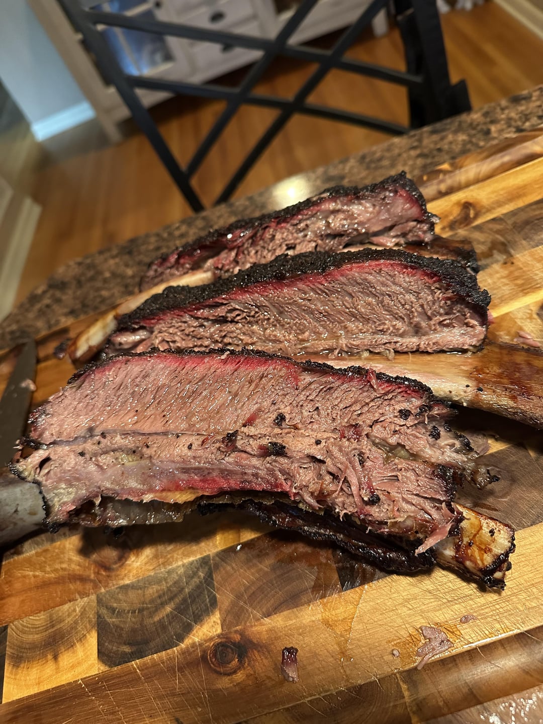 First photo is right after coming off, before wrapping and hot holding for a few hours before dinner. Second photo is right before enjoying. Despite needing a sharper knife, they were everything I wanted them to be. Delicious.
