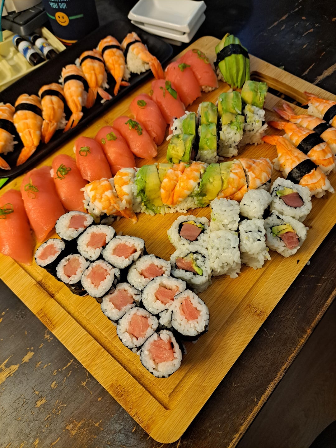 Ahi, ebi. Made into nigiri and rolls. by vanco_fl 2 Comments MikaAdhonorem 6 months ago I see you like Salmon as much as I do. I’m glad you had the opportunity to eat out and enjoy this meal. Night-Fury-dragon 6 months ago That looks fantastic!