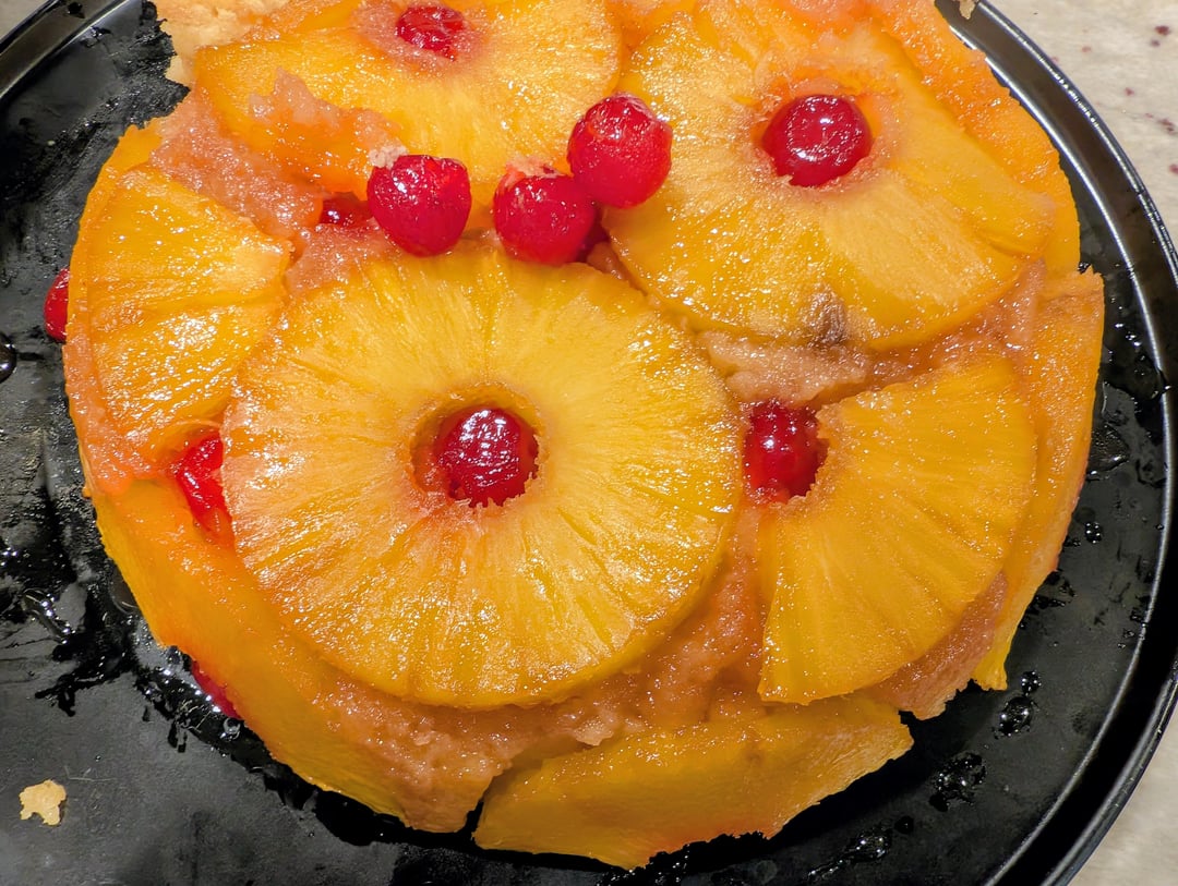 I bought an amazing fresh pineapple and made a pineapple upside down cake the evening before I was going to make the ice cream. I followed this recipe but used fresh pineapple instead of canned. https://sugarspunrun.com/pineapple-upside-down-cake/