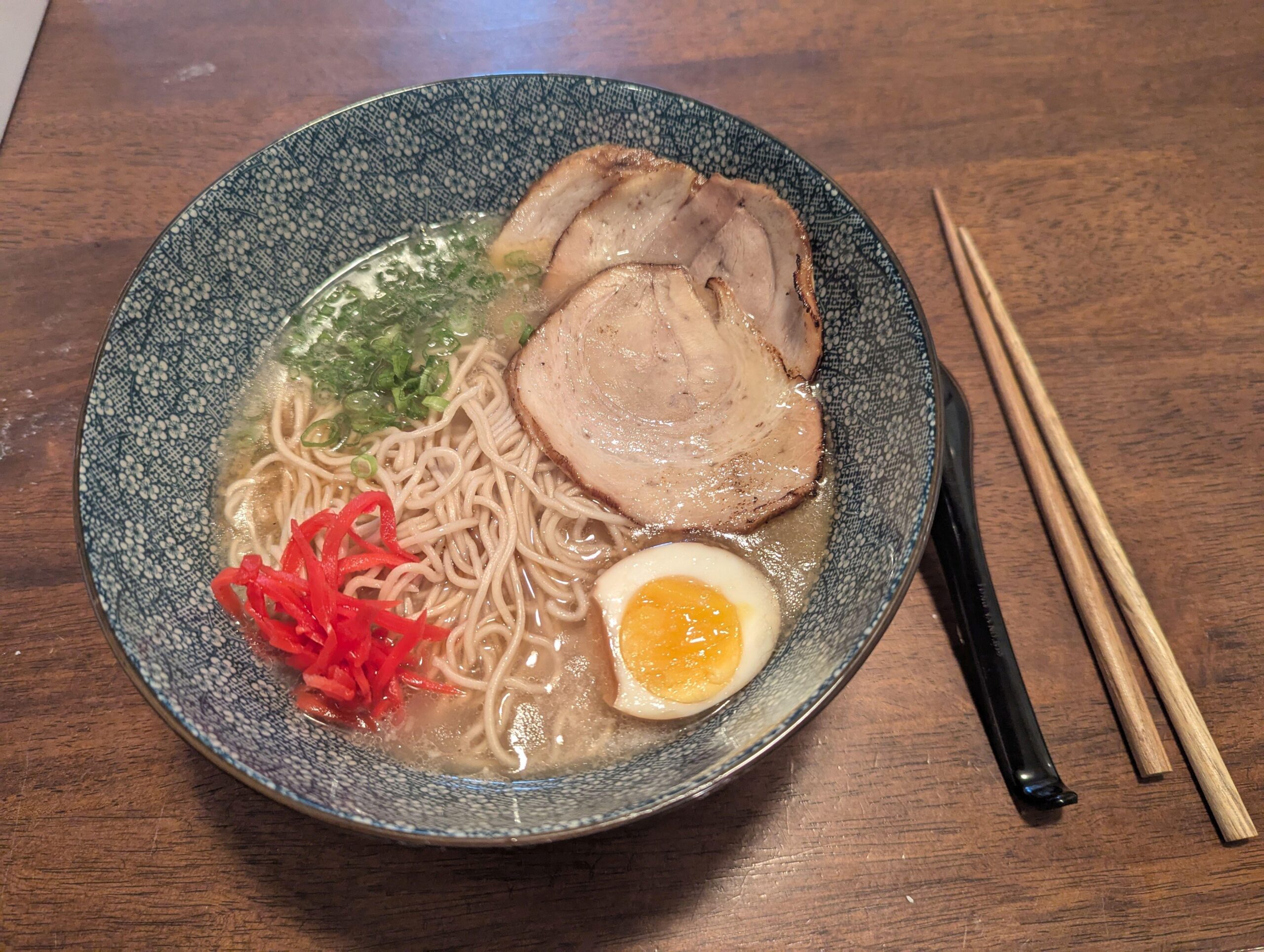 Just got back from Japan and now totally obsessed with ramen. This is my first pass at tonkotsu. Used all femur bones (and a piece of fat back per ramen_lord) for the broth. Cooled in in the fridge and skimmed a thick layer of fat off of the top. The broth completely solidified due to all of the gelatin. Is that normal? When I finally re-heated the broth, which melted easily, and I assembled the ramen, the broth was much thinner and less creamy than what I had in Japan. Did I skim too much fat? Also, when I added the tare (also per ramen_lord) the broth turned from creamy white to more of a pale tan – a color I don't recall seeing in Japanese Ramen I ate. Finally, I made the noodles with a 36% hydration and found the dough very dry and nearly unworkable. It took a LOT of kneading and passes through an electric pasta roller to get it to cohere. The final product was great but took a ton of work. In a cooking class in Osaka we made ramen with 45% hydration that was MUCH easier to work. Those noodles had a fine chew just like the 36% ones I made. Any thoughts or comments on these issues? Thanks for caring and sharing!