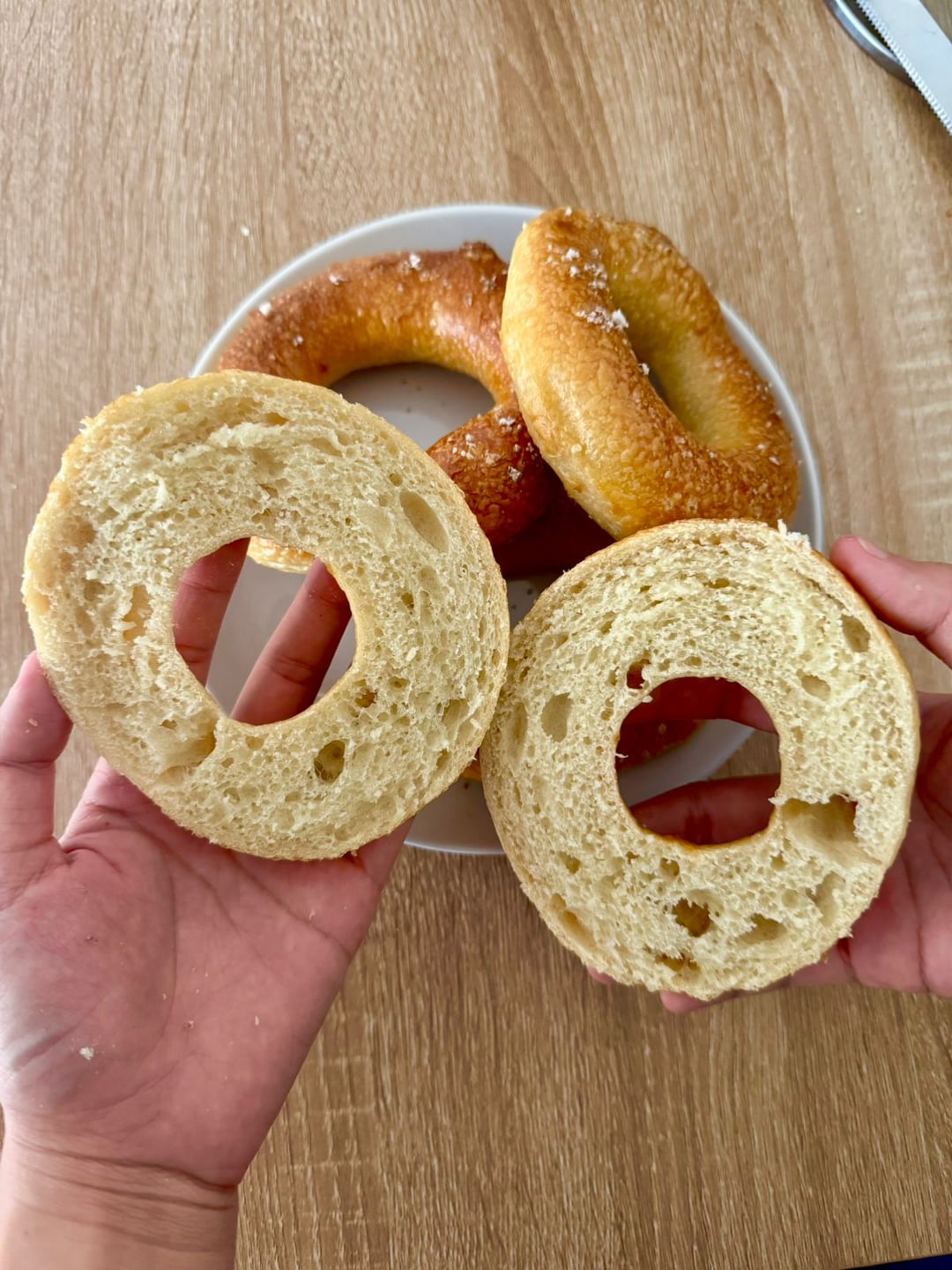 Second attempt with bagel cause I'm not satisfied with my first attempt (the inner texture was on a denser side and aesthetically no holes)
