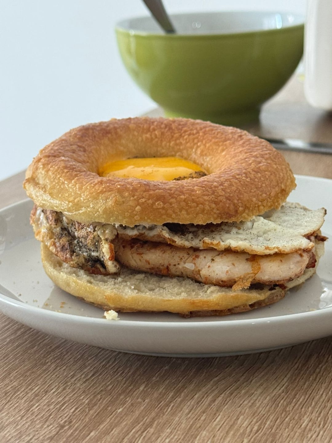 Last pic, is me eating the plain bagel with grilled chicken and sunny side up 🥰 great way to start my day ☺